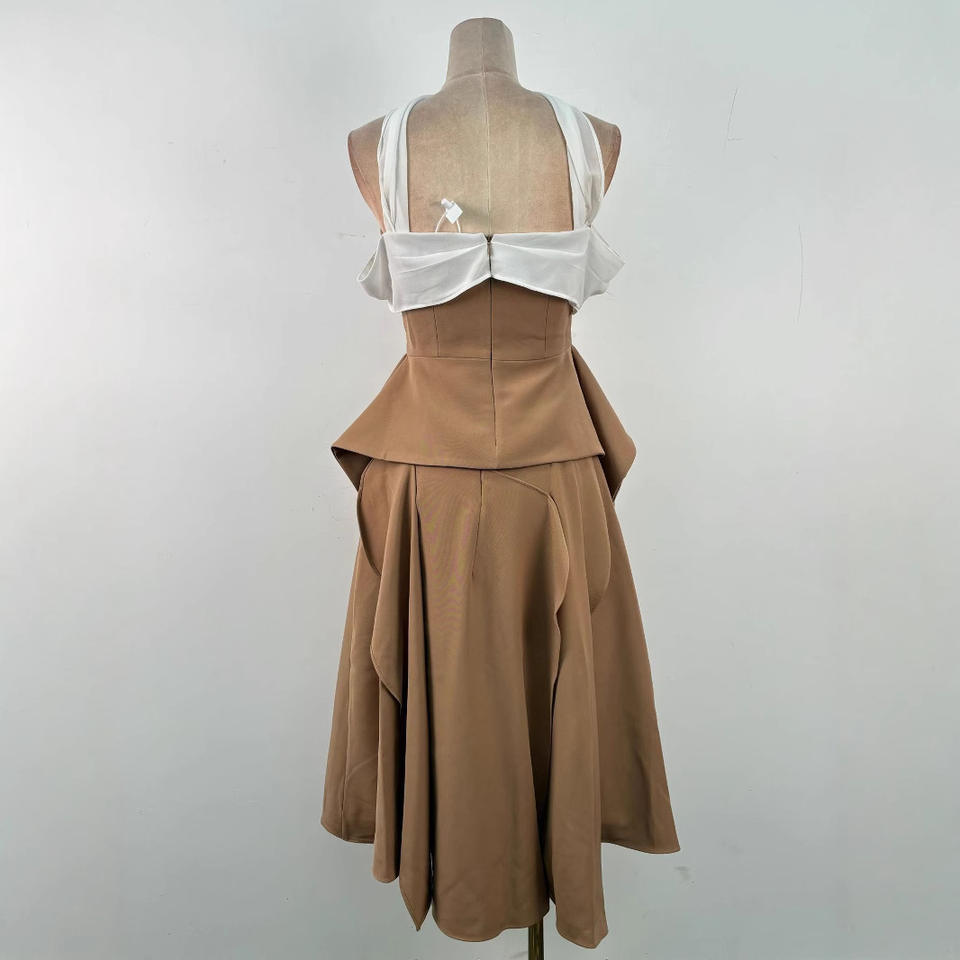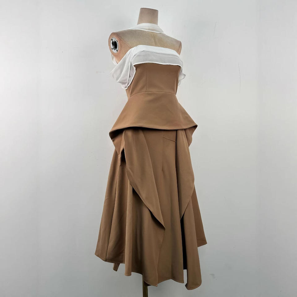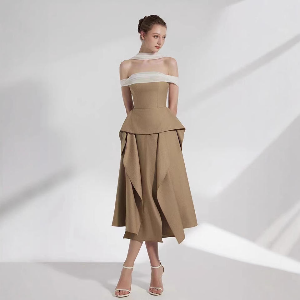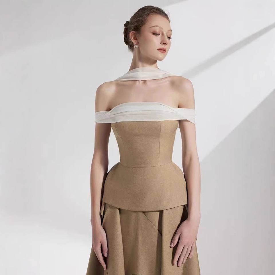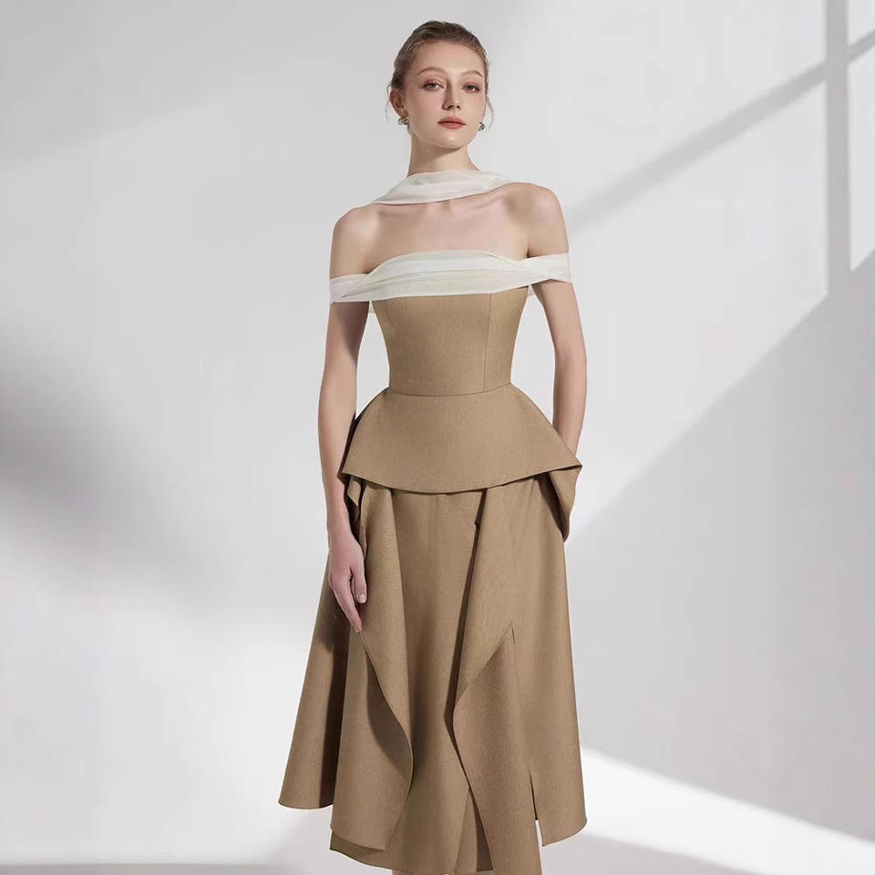 Abito Midi monospalla in stile intellettuale vietnamita in due pezzi con gonna lunga asimmetrica intrecciata