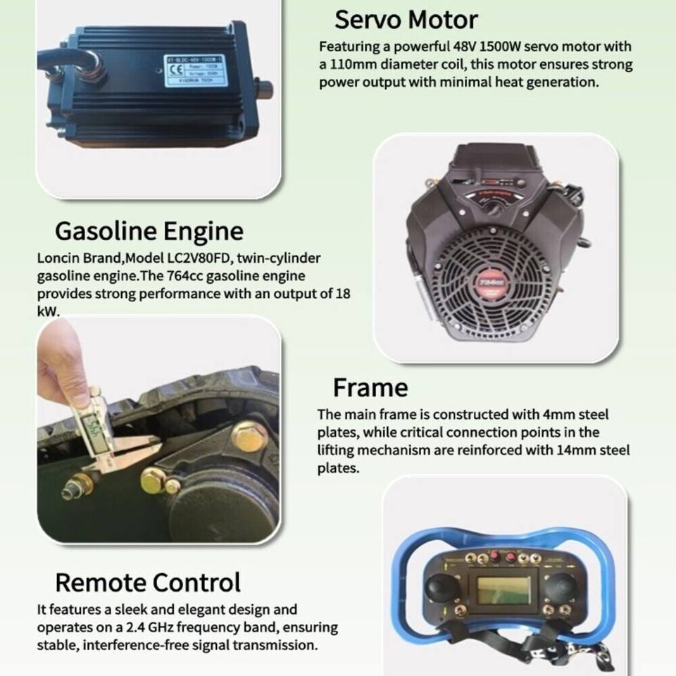 4 tempi, Antiscorrimento, Antistallo, Senza cordone, Alta coppia di torsione, Semoventi, acciaio ChasisCaratteristica