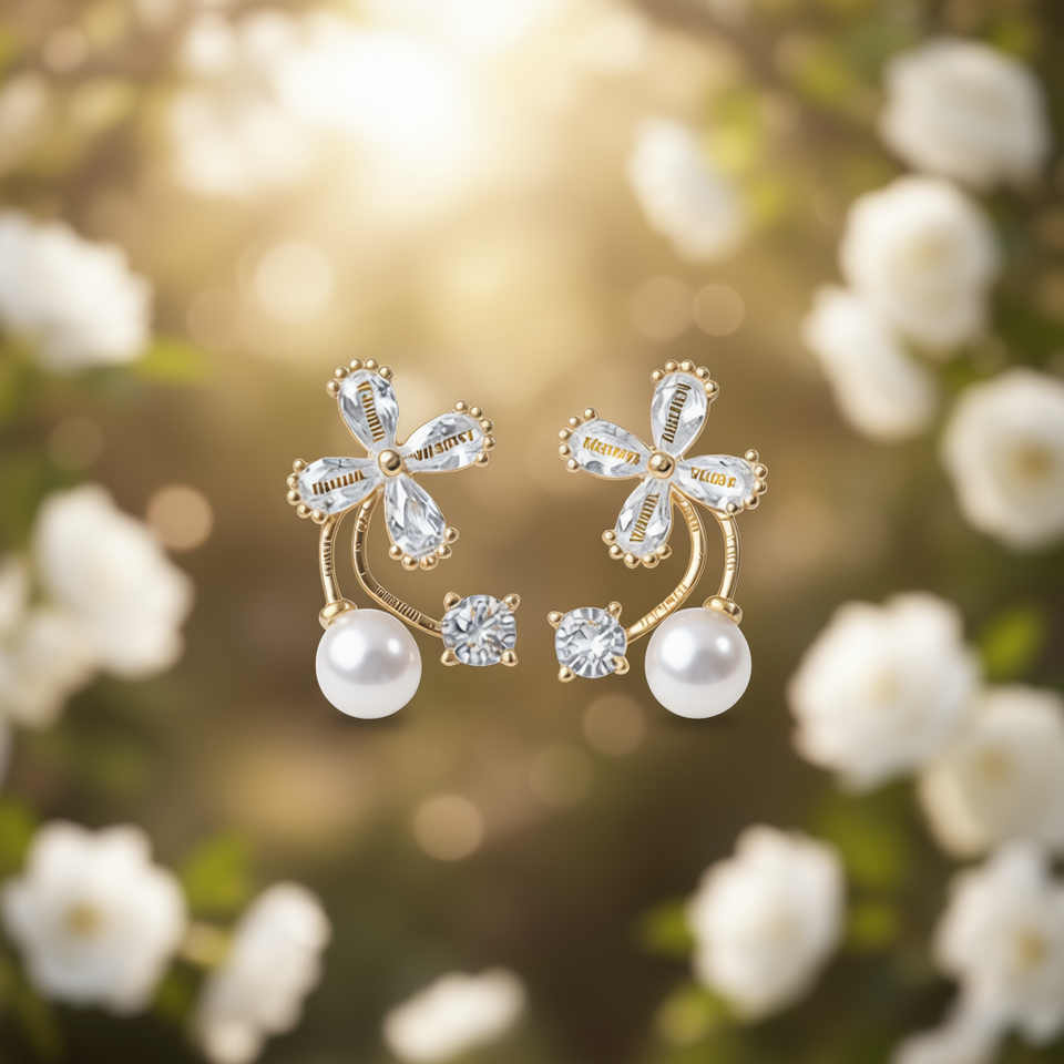 Vilagold Flower Stud Earrings Gold Plated Faux Pearl AAA Round White Romantic Wedding Jewelry For Women