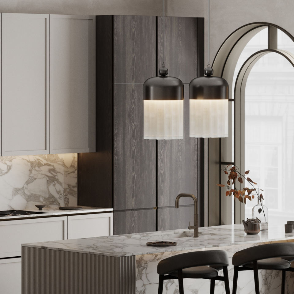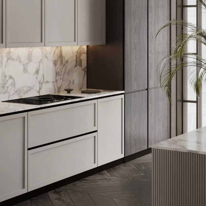 Servizi di Design 3D per Ville: Set di Mobili Moderni di Lusso per Cucina Bianca e Grigia Lucida, Progetti per Ville e Resort