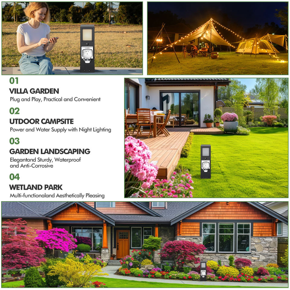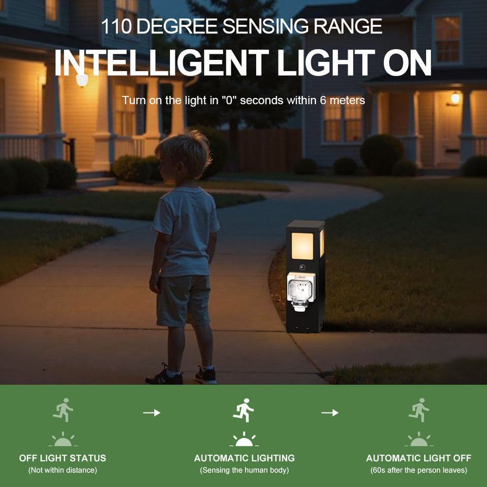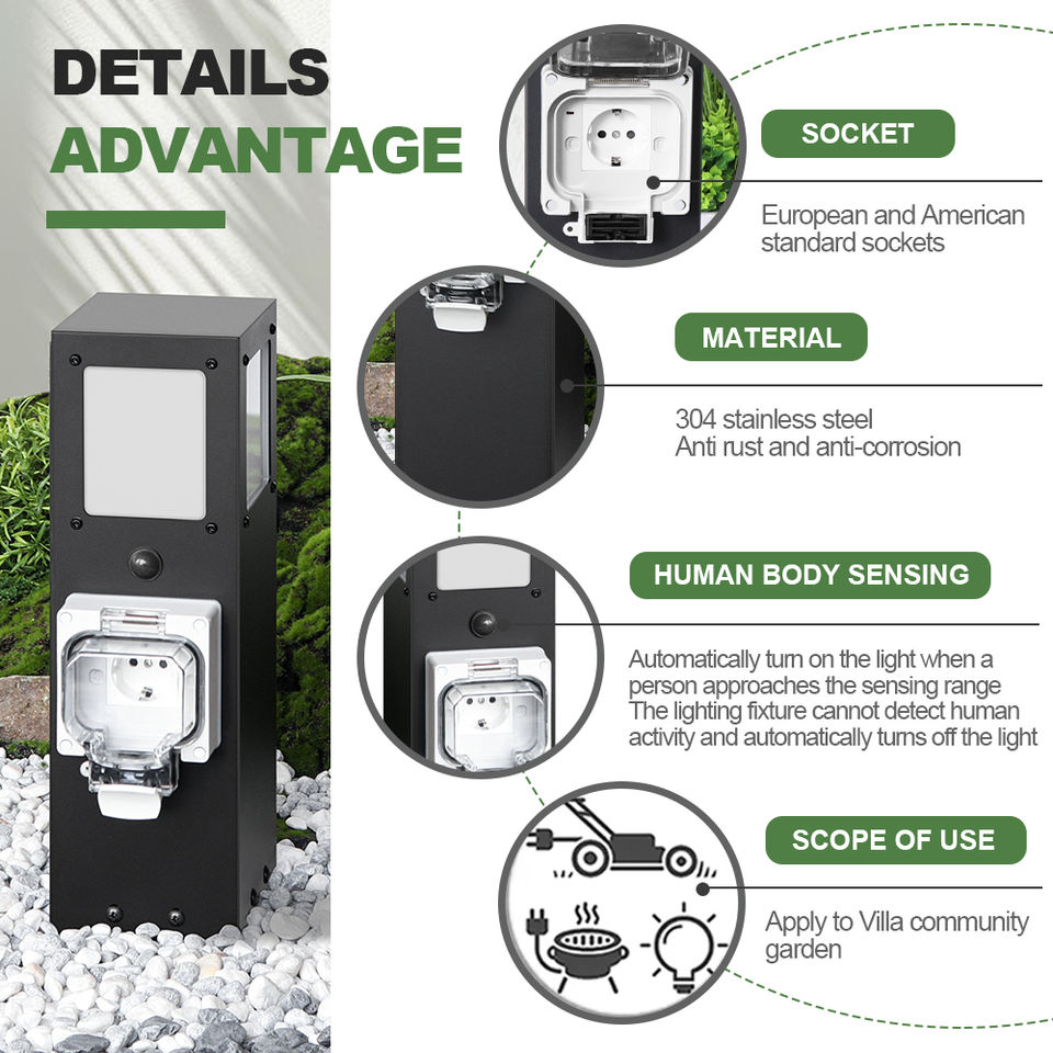 Il sensore del giardino esterno della Villa illumina la Base di potere della colonna della presa di terra