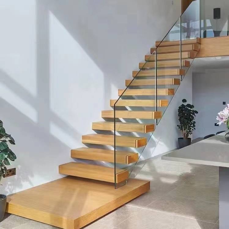 Villa semplice scala corrimano Custom nascosto chiglia in acciaio di vetro in legno massiccio acciaio scala diritta galleggiante