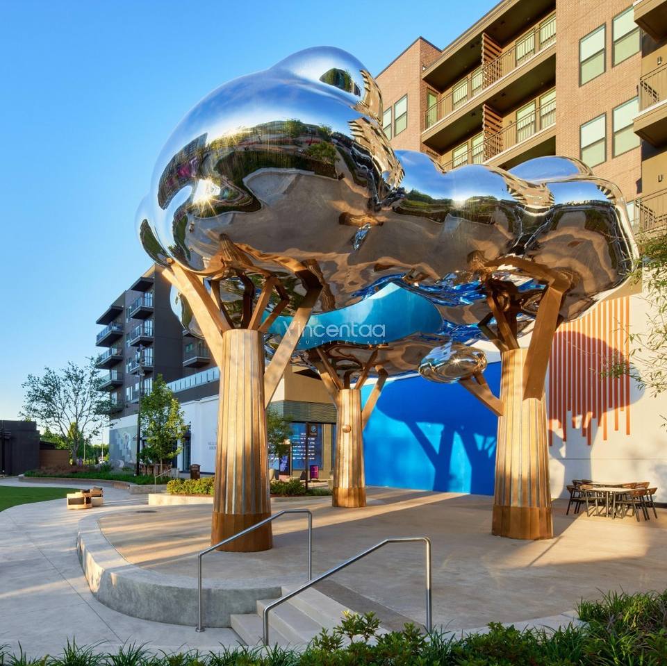 Scultura Moderna in Acciaio Inox a Forma di Albero Nuvola Vincentaa, Scultura da Esterno di Produzione Industriale