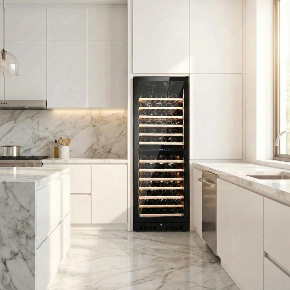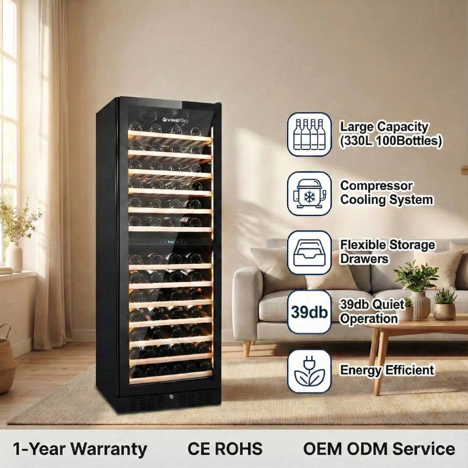 Vinopro 108 Bottiglie Frigorifero Cantinetta Vino a Doppia Zona con Compressore 330L 40dB Silenzioso per Hotel, Uso Commerciale e Domestico