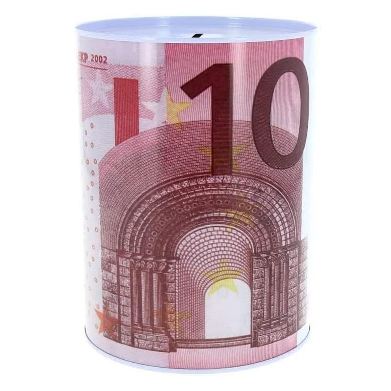 Vintage 13.5x19 cm Piggy Bank Cylindrical Tin Money Box with Euro Note & Coin Purse Collection Gift
