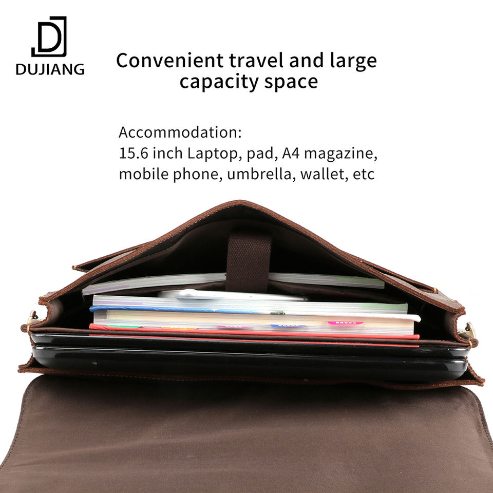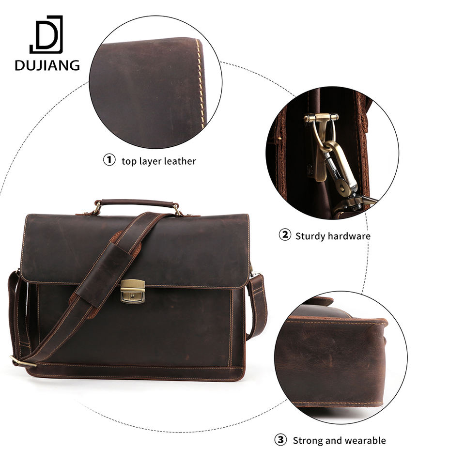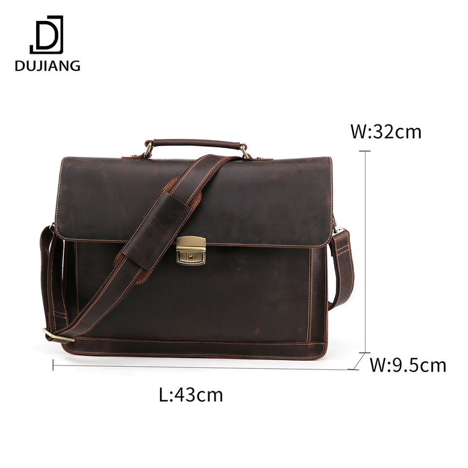 Vintage 14\"-15.6\" Laptop Briefcase Bag for Men Brown Blue Genuine Crazy Horse Leather for Lawyers Office Hard Bag Business