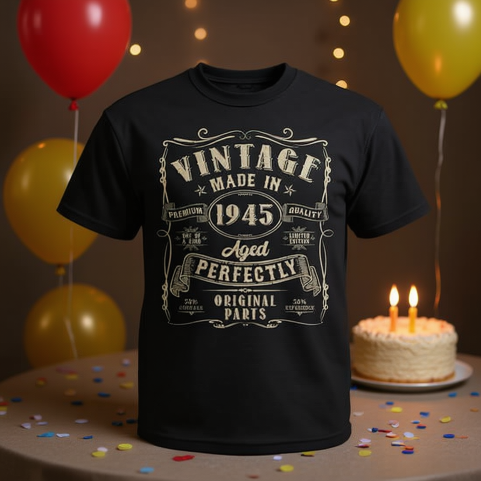 T-shirt vintage per decorazioni del 80° compleanno del 1945, T-shirt promozionale personalizzata per la festa del 80° compleanno