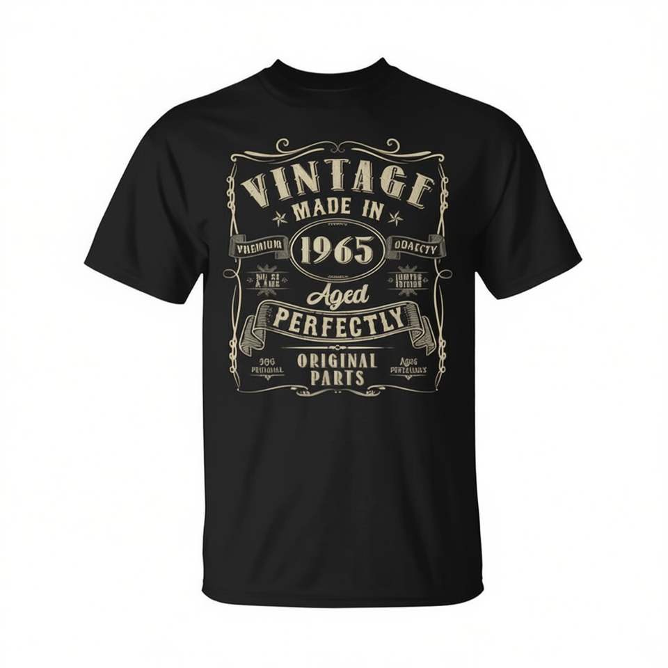 T-shirt vintage del 1965 realizzata con parti originali perfettamente invecchiate, per uomo, 60° compleanno