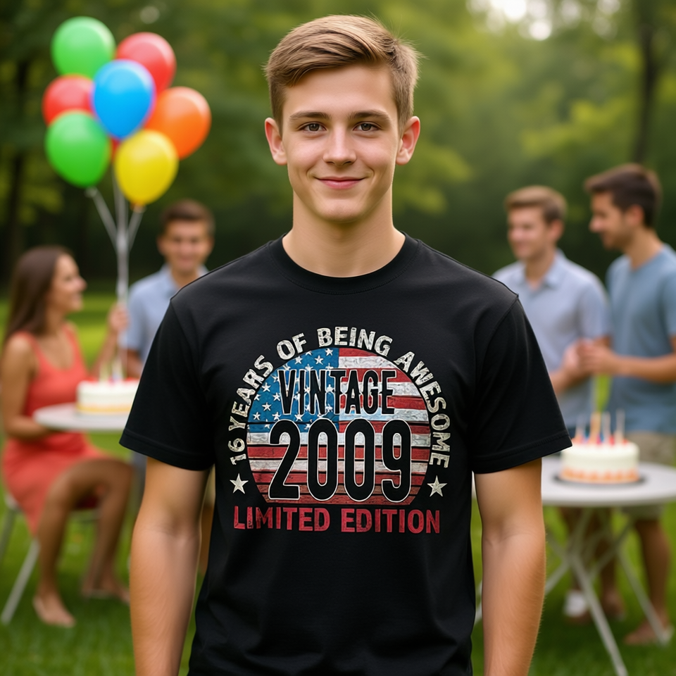 T-shirt vintage del 2009 per il 16° compleanno di un ragazzo. Celebra il 16° compleanno con stile.