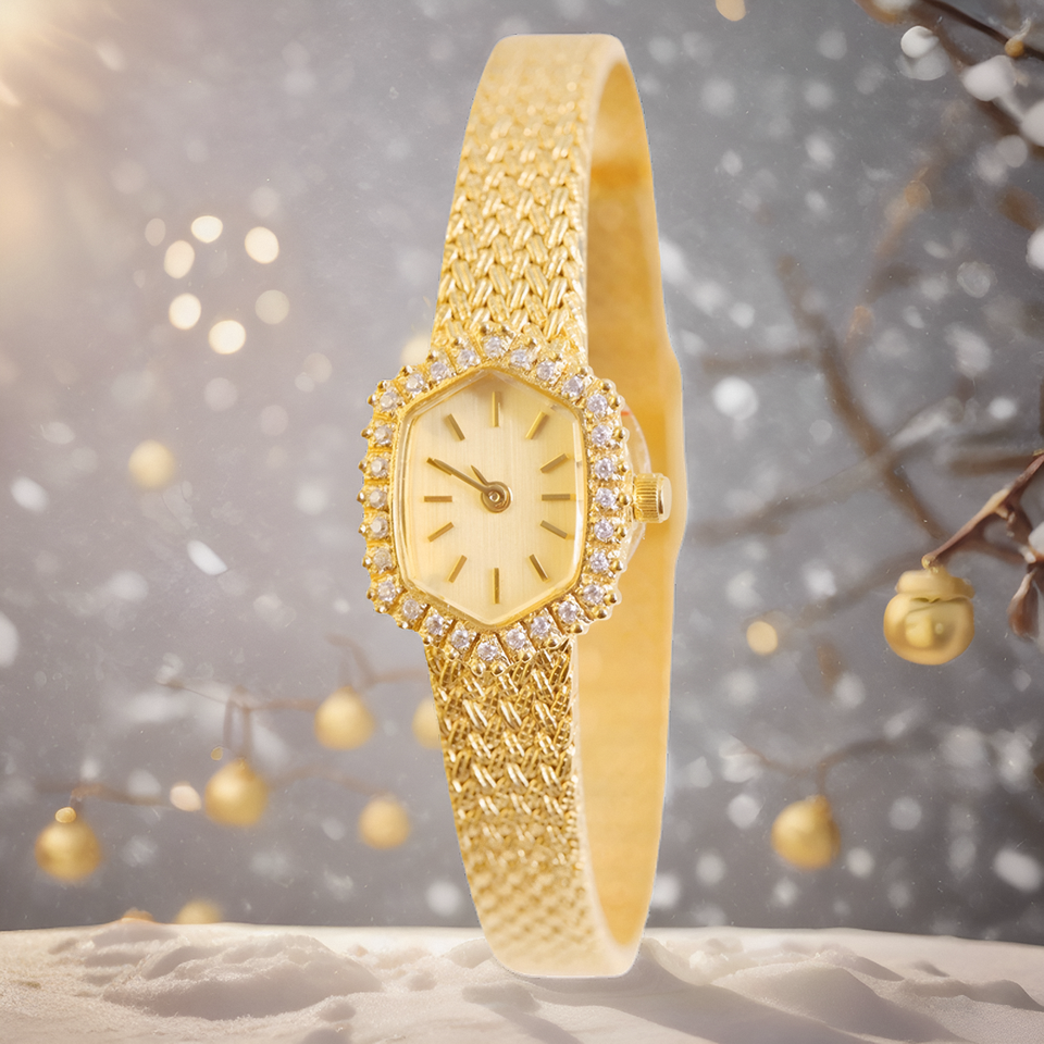 Vintage 2024 Copper Diamonds 18K Plated High Quality Retro Women Watches Crystal Clock Ancient