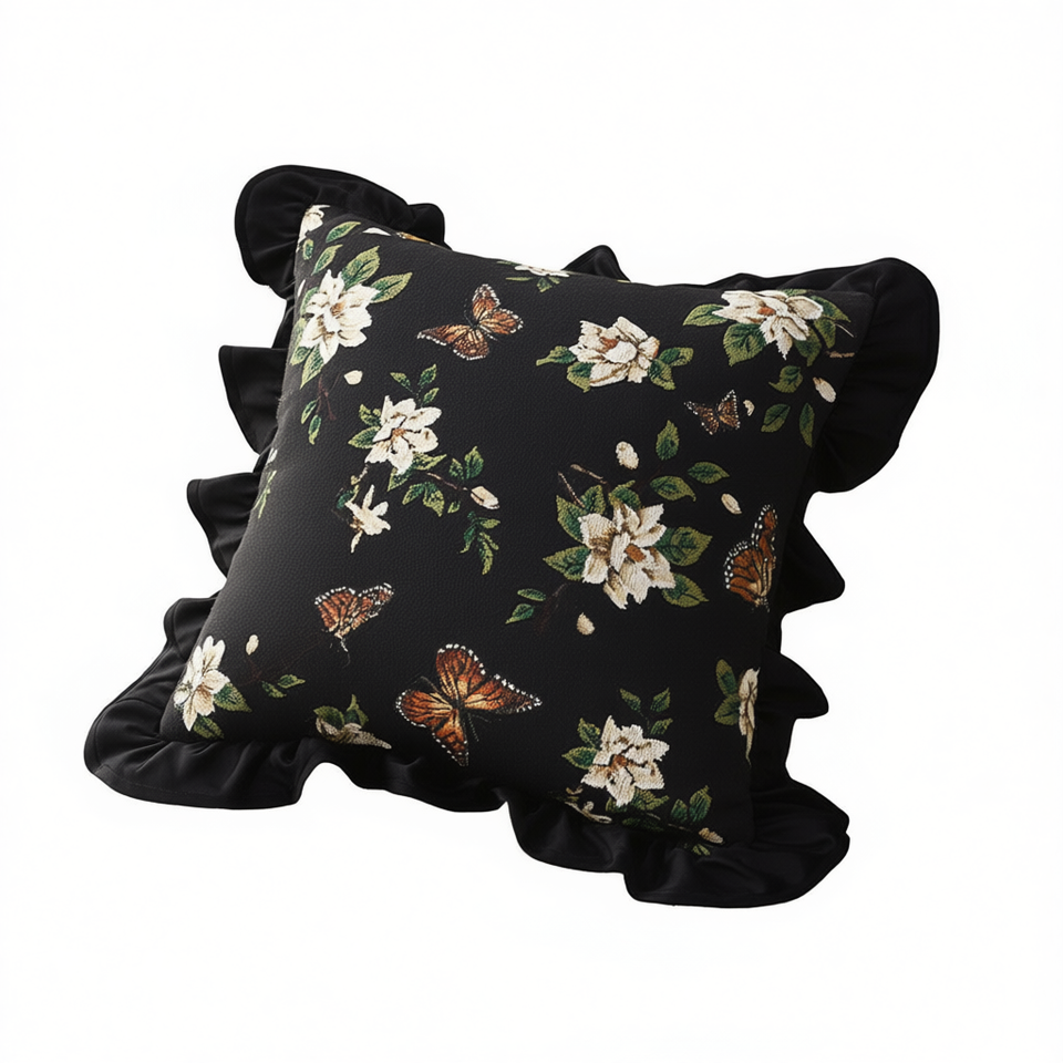 Cuscino Decorativo Vintage Quadrato Ricamato 45cm in Cotone Nero per Divano, Letto, Soggiorno, Arredamento Casa