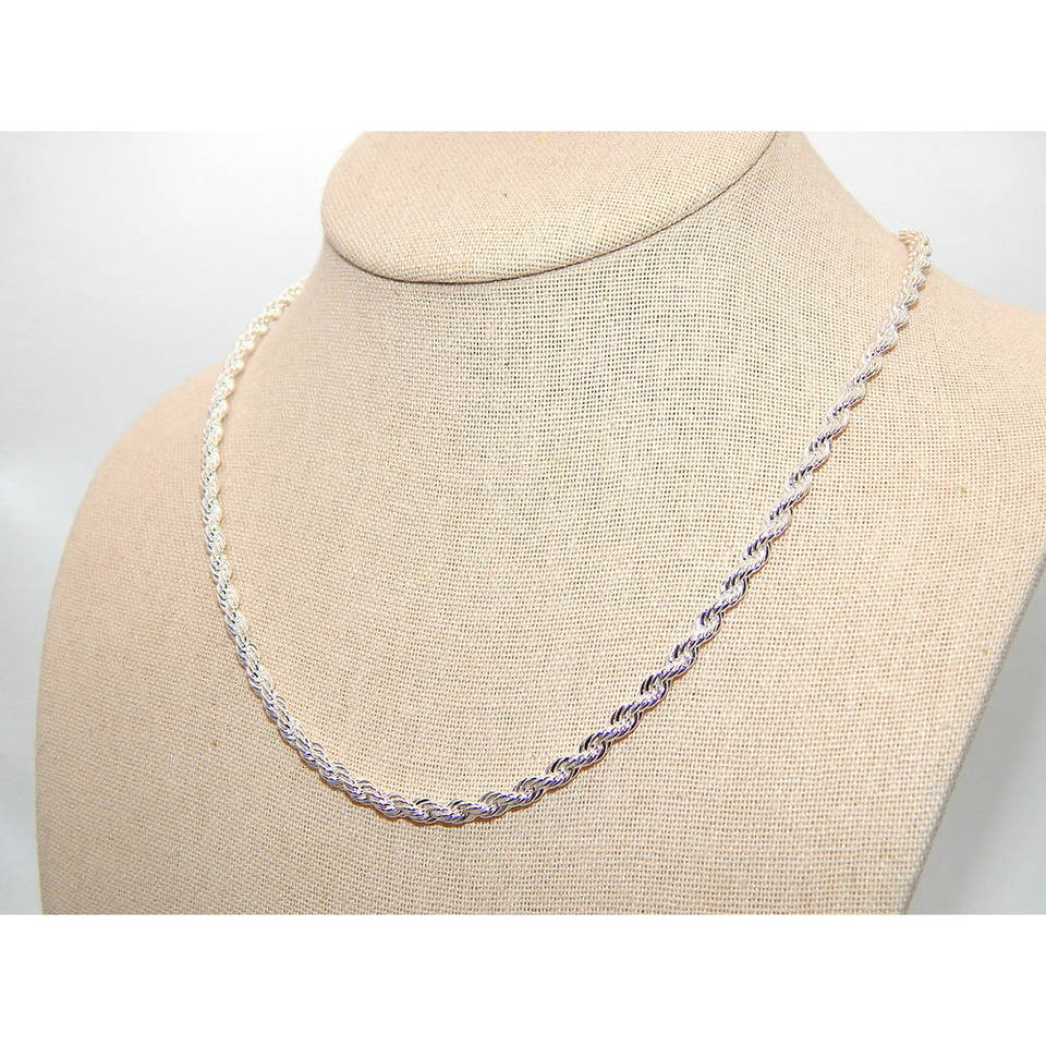 Collana Vintage in Argento Sterling .925 con Catena a Corda Placcata Oro e Rodio, Vari Modelli con Diamanti, Serpente, Figaro e Numeri