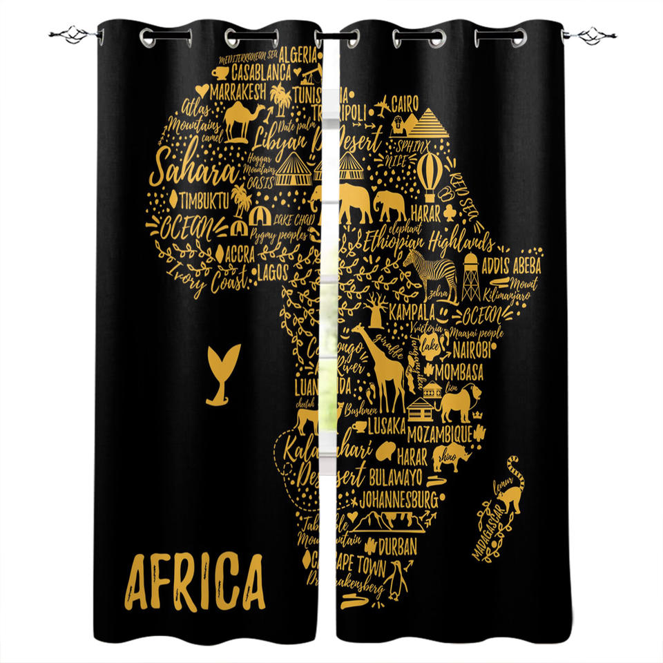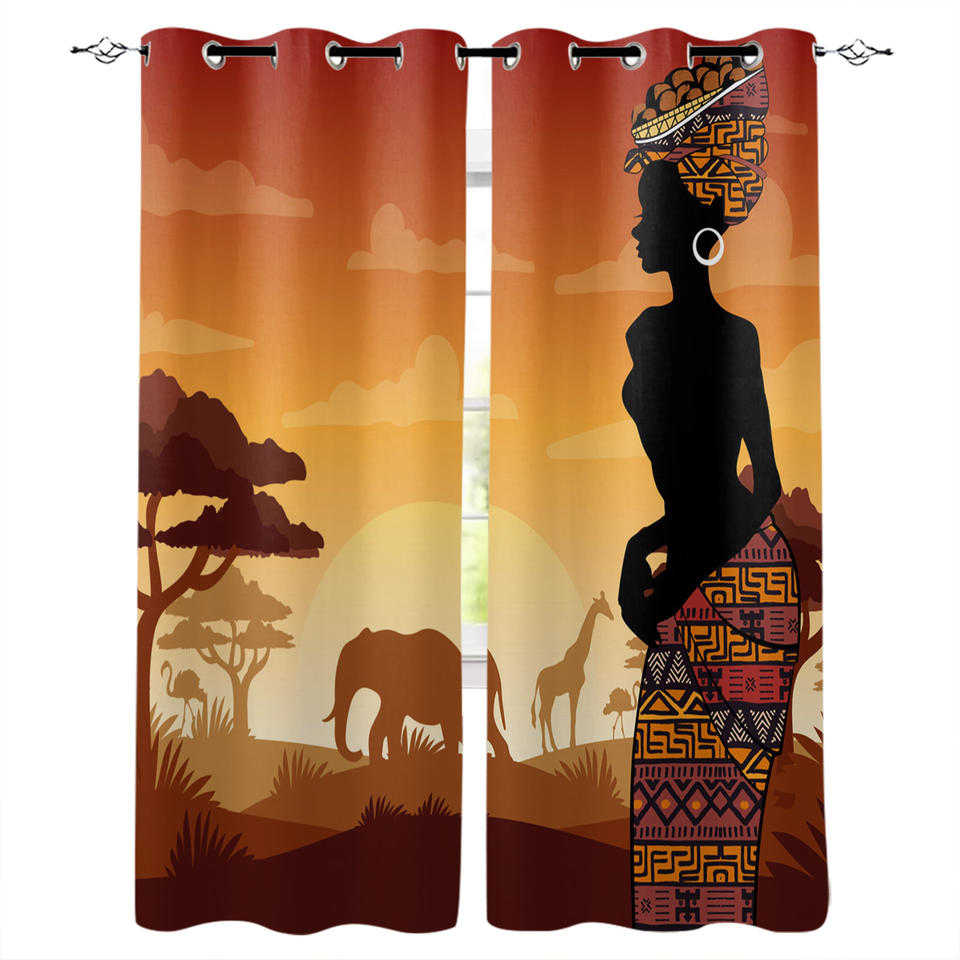 Tende Oscuranti Personalizzate in Tessuto di Poliestere con Motivo Africano Vintage per il Soggiorno