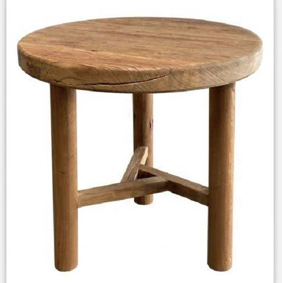 Vintage Antique Industrial Round Raw Slab Reclaimed Wood Center Tea Coffee Table