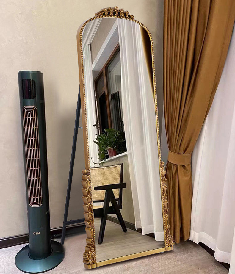 Vintage Antique Wood Arch Frame Art Decor Primrose Mirror Gorgeous Gold Wall Filigree Floor Mirror for Home Living Room