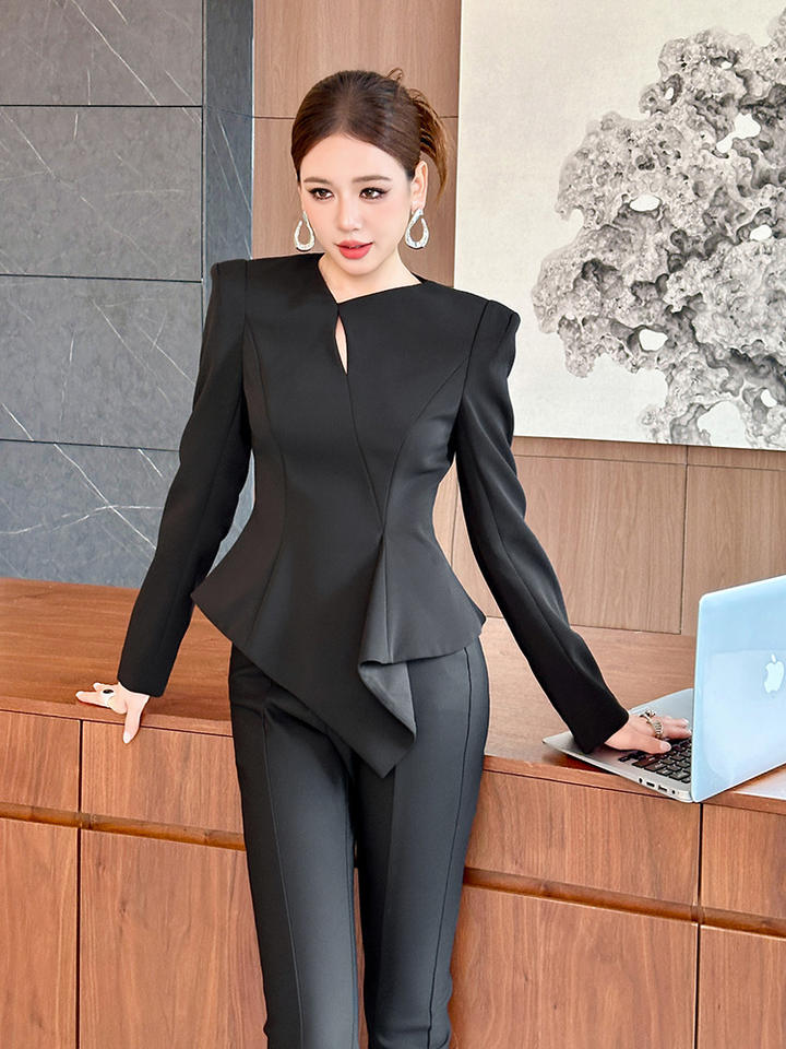 Camicia Blazer Elegante da Donna Vintage per Autunno e Primavera, Nera a Maniche Lunghe, Stile Business