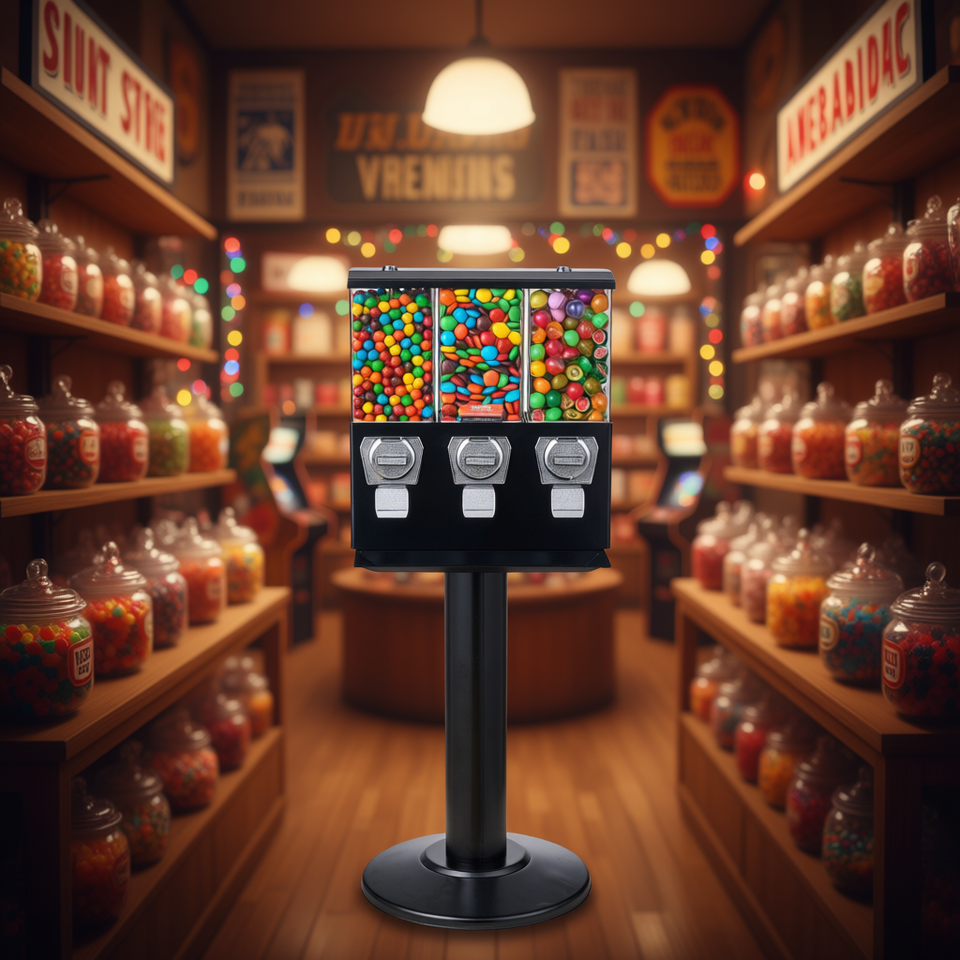 Distributore di Caramelle Vintage Nero con Supporto e Funzione di Banca di Monete