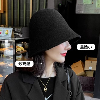Vintage Black Wool Bucket Hat for Children Fall/Winter Korean Trendy Style Bare Face Design
