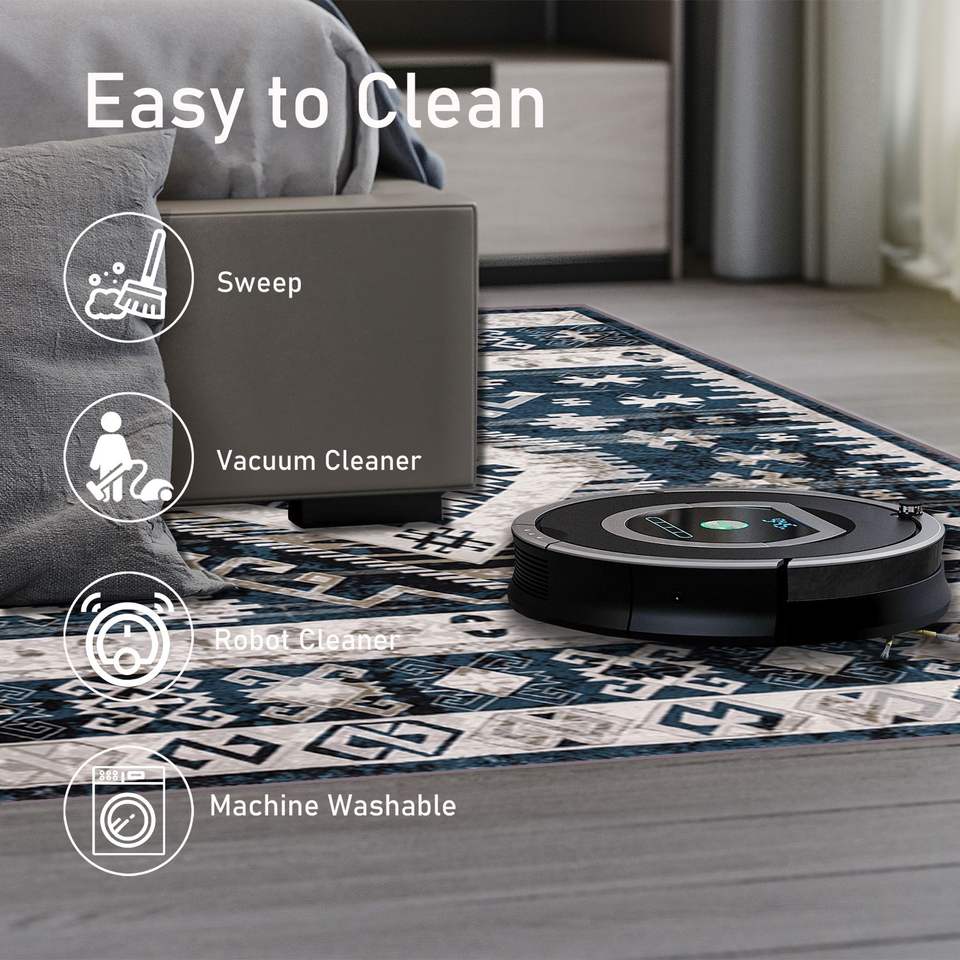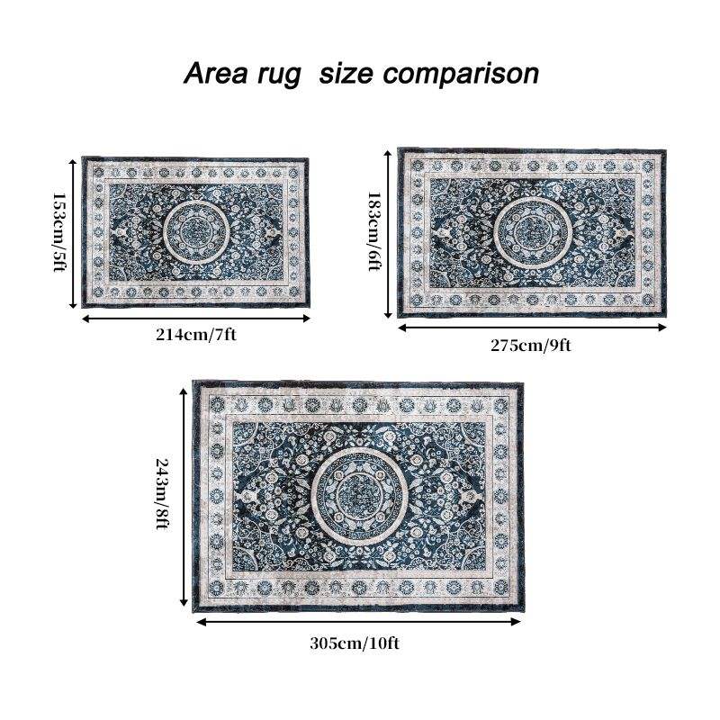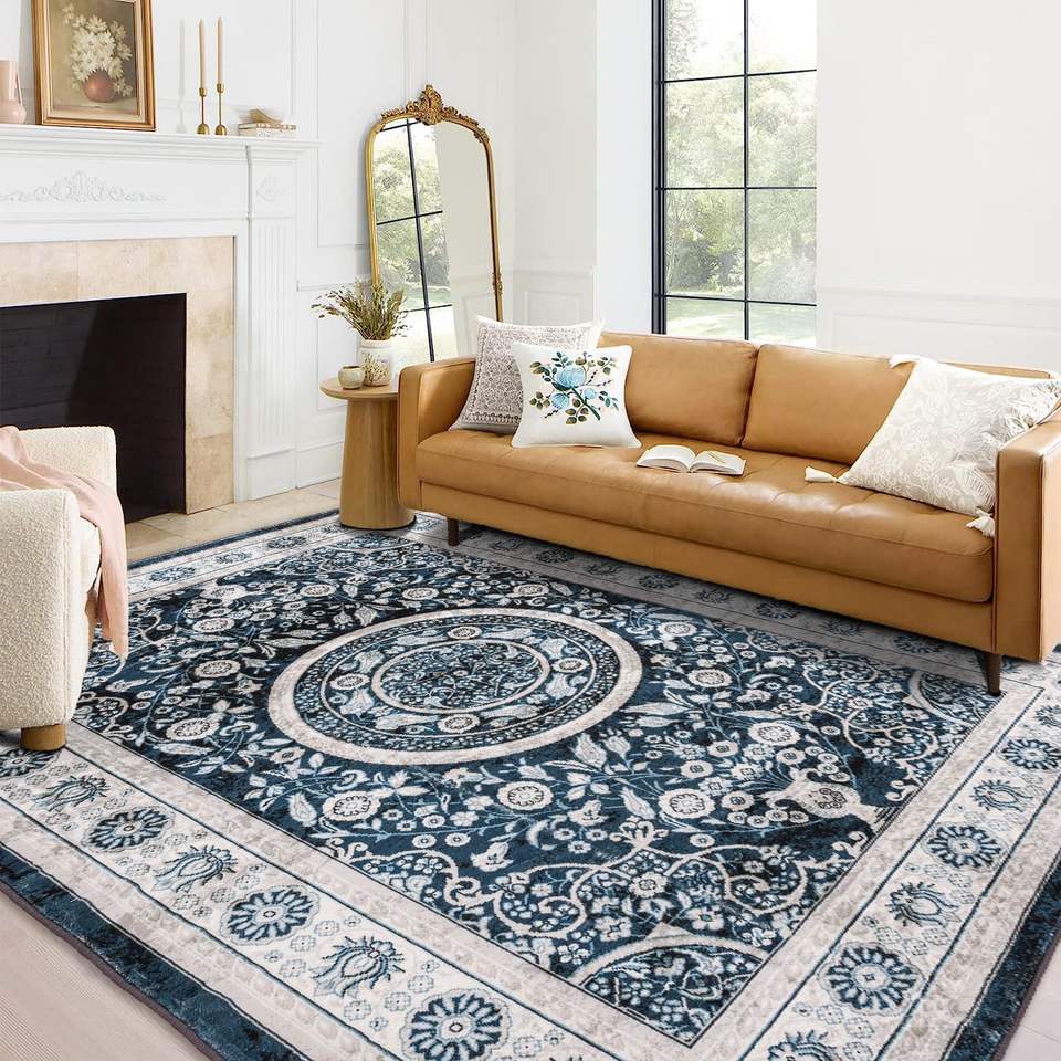 Vintage Bohemia Design Navy Blue Area Rug 6x9 Large Persian Non-Slip Washable for Living Room Kitchen Bedroom