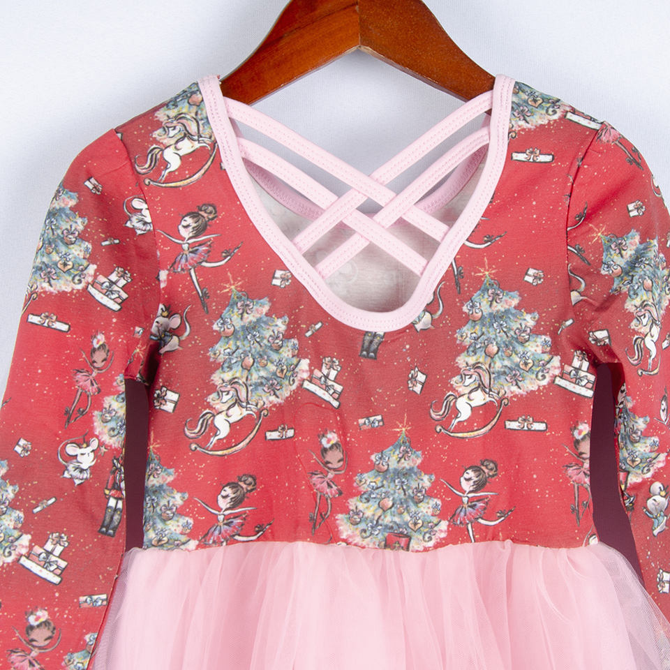 Vintage Boutiques Outfit Children Clothes Wholesale Baby Girls Long Sleeve Party Dresses Red Kids Christmas Dress