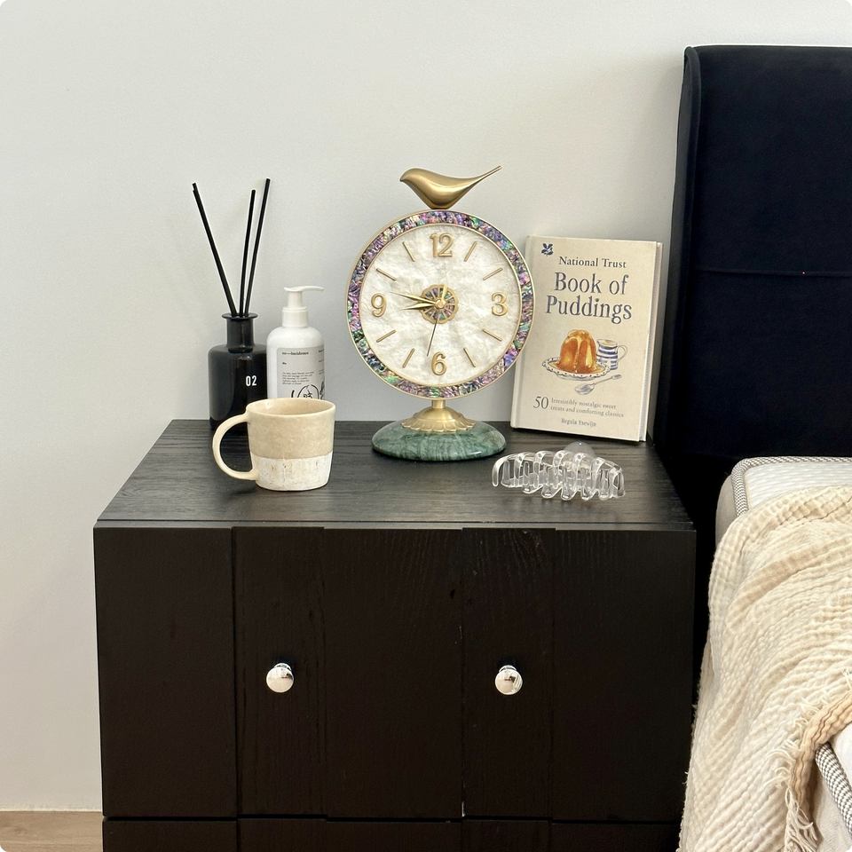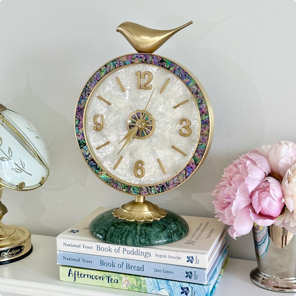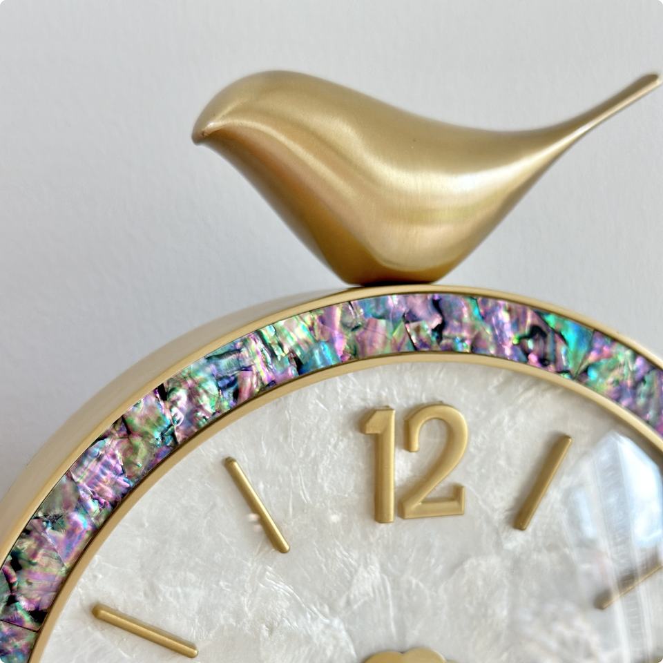 Vintage Brass Bird Quartz Clock Luxury Art Design Home Living Room Bedroom Quiet Desktop Decoration Digital Jade Shell Watch
