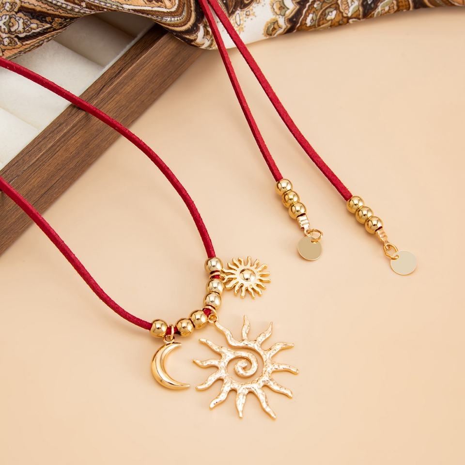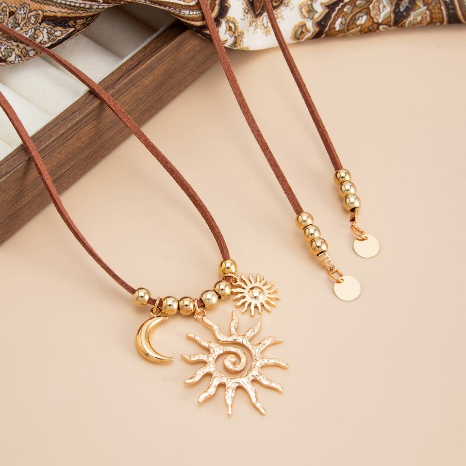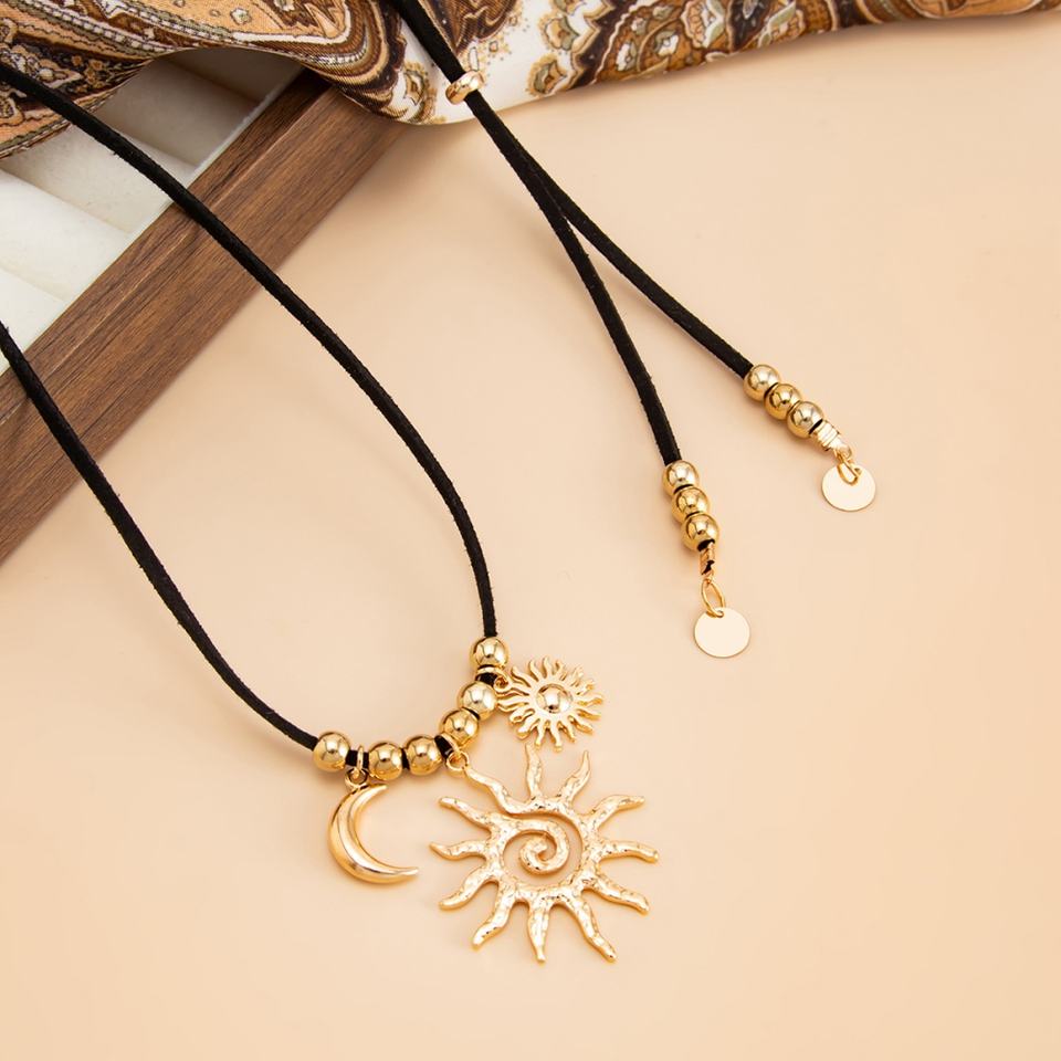 Vintage CCB Beads Moon/Sunflower Pendant Necklaces for Women Trendy Ladies Daily Long Necklace Accessories Fashion Jewelry Gifts