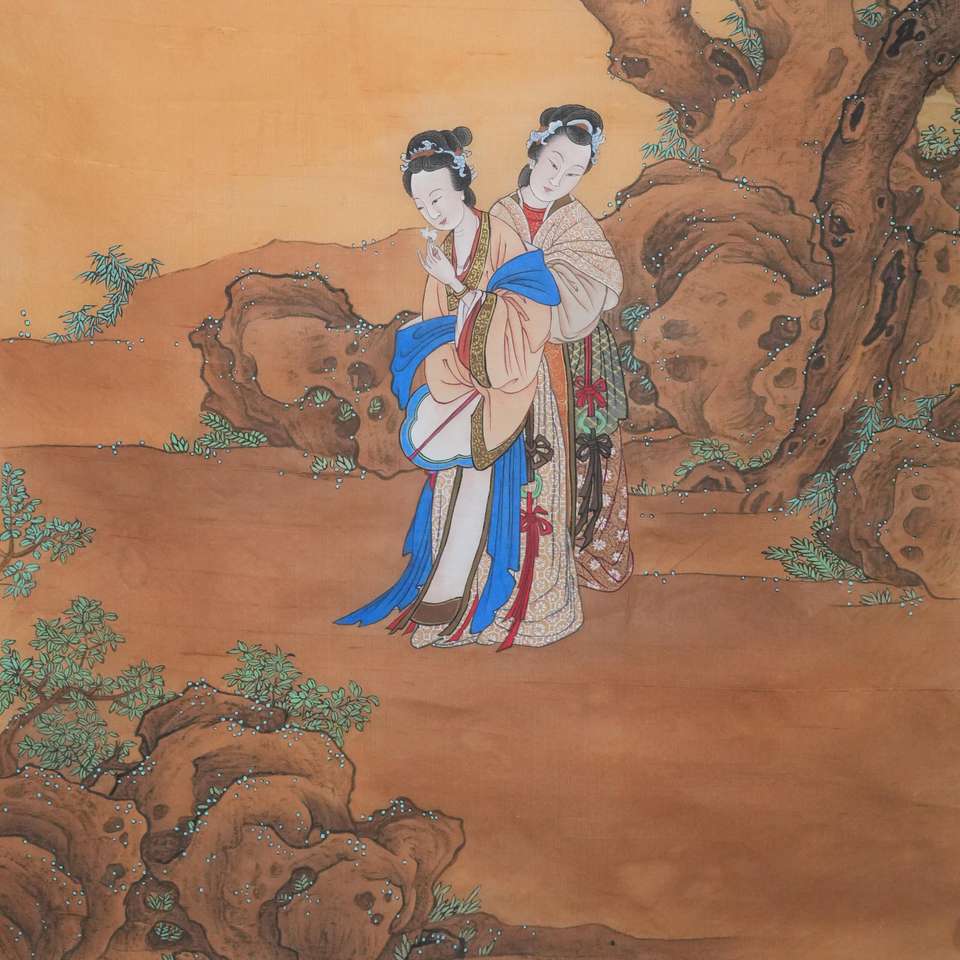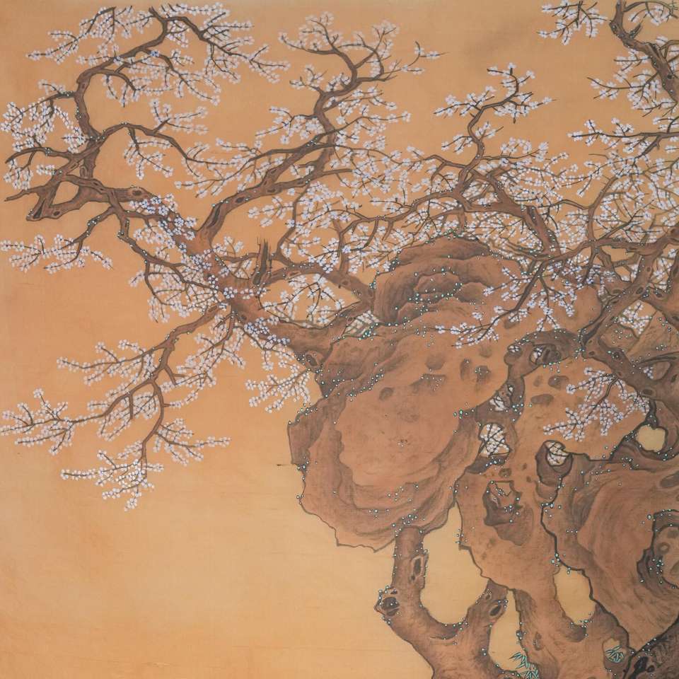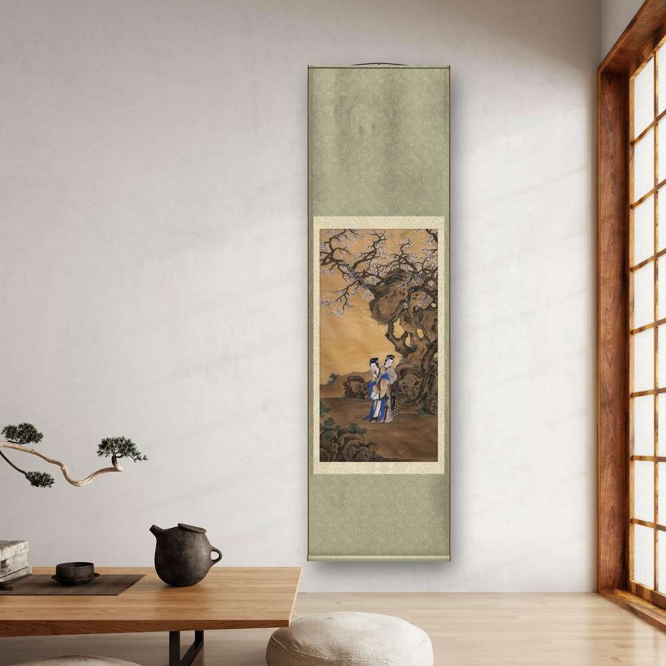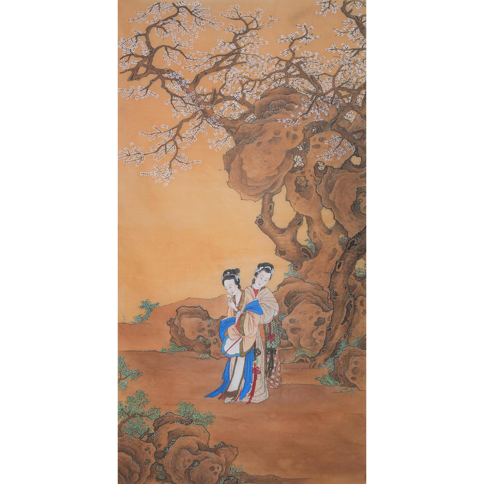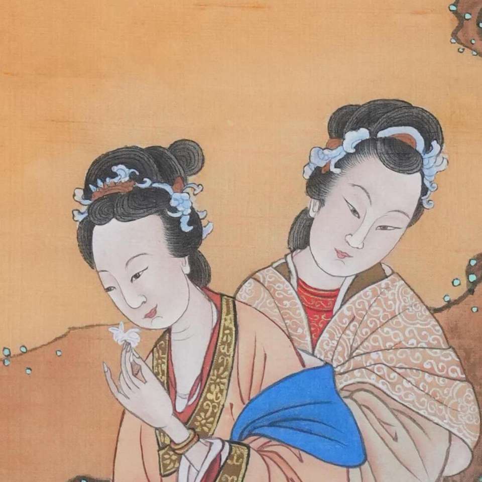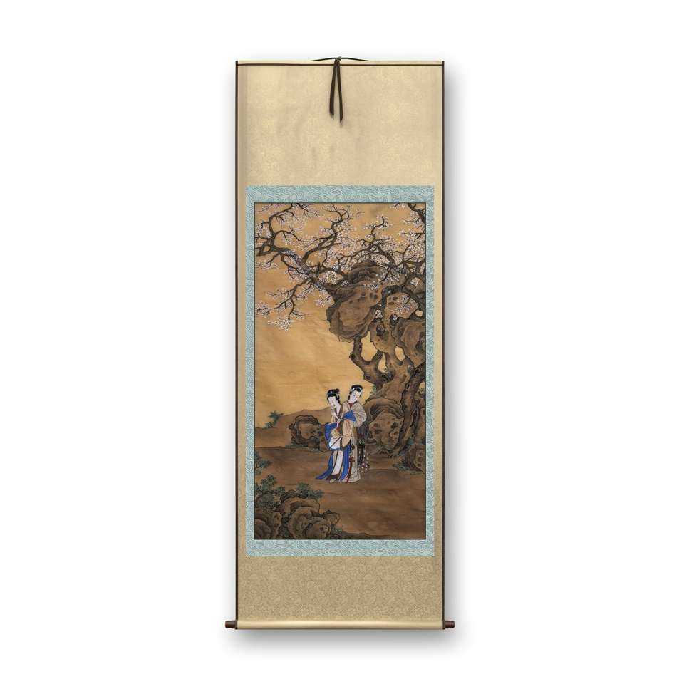 Pergamena d'Arte Vintage Cinese Dipinta a Mano con Figura Femminile e Fiori di Prugna per Arredamento Casa e Collezione