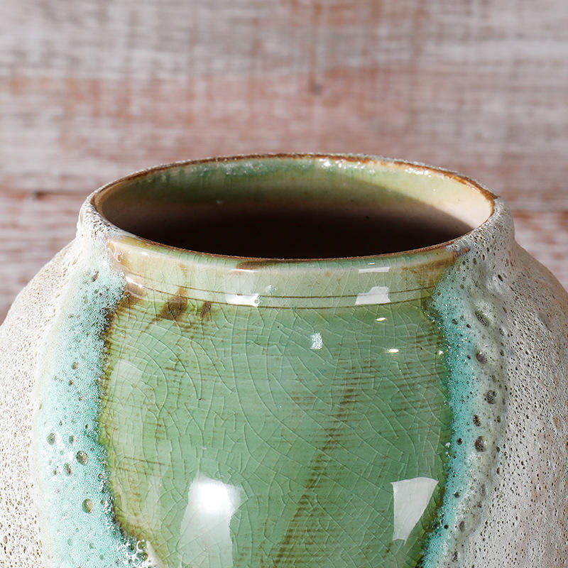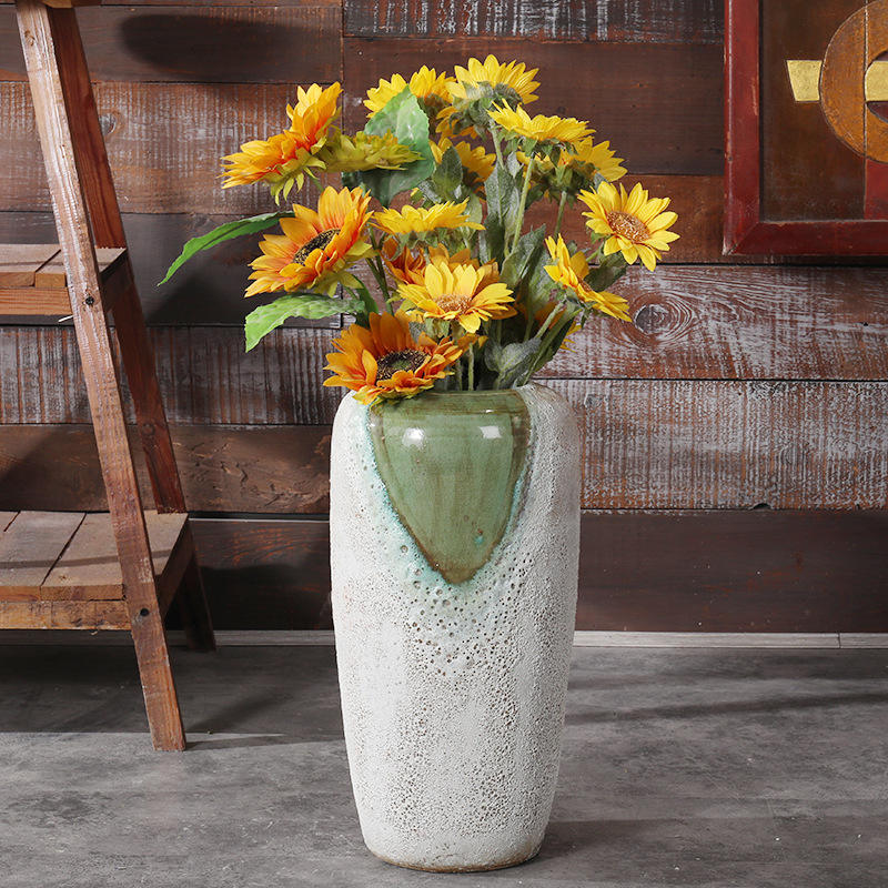 Vintage Chinese Style for Living Room Yard Floor Desktop Ornament Coarse Pottery Ceramic Flower Vase for Home Decor