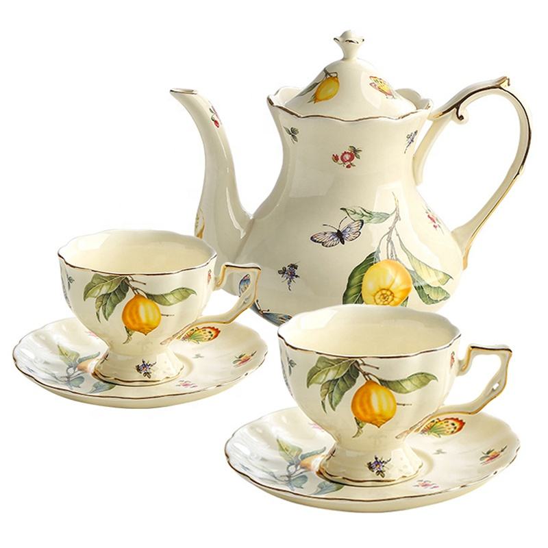 Teiera da caffè Vintage tazza da tè pomeridiano francese di lusso in ceramica e piattino Set di 2 tazze di limone in porcellana con teiera