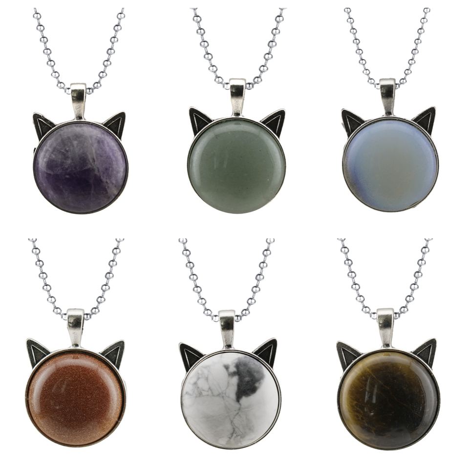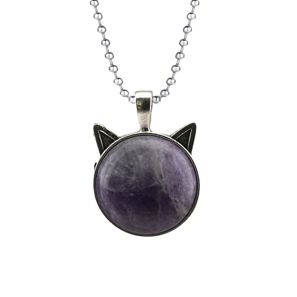 Vintage Crystal Pendant Necklace Cat Head Shape Natural Gemstone Pendant Graduation Gift for Friends and Lovers