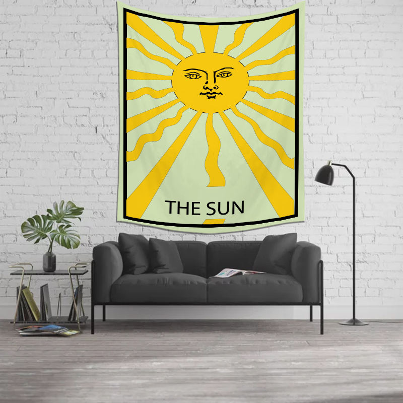 Vintage Custom Wall Hanging Tapestries Black & White Anime Astrology Sun Moon Witchcraft Tarot Spiritual Pattern Ready to Ship