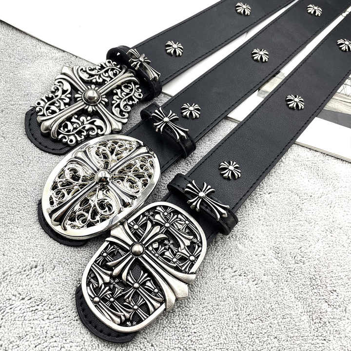 Vintage Design Brand Designer Y2K Belt Men's Classic Cross Buckle with Black PU Leather Belt for Men and Women