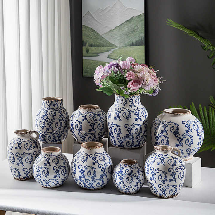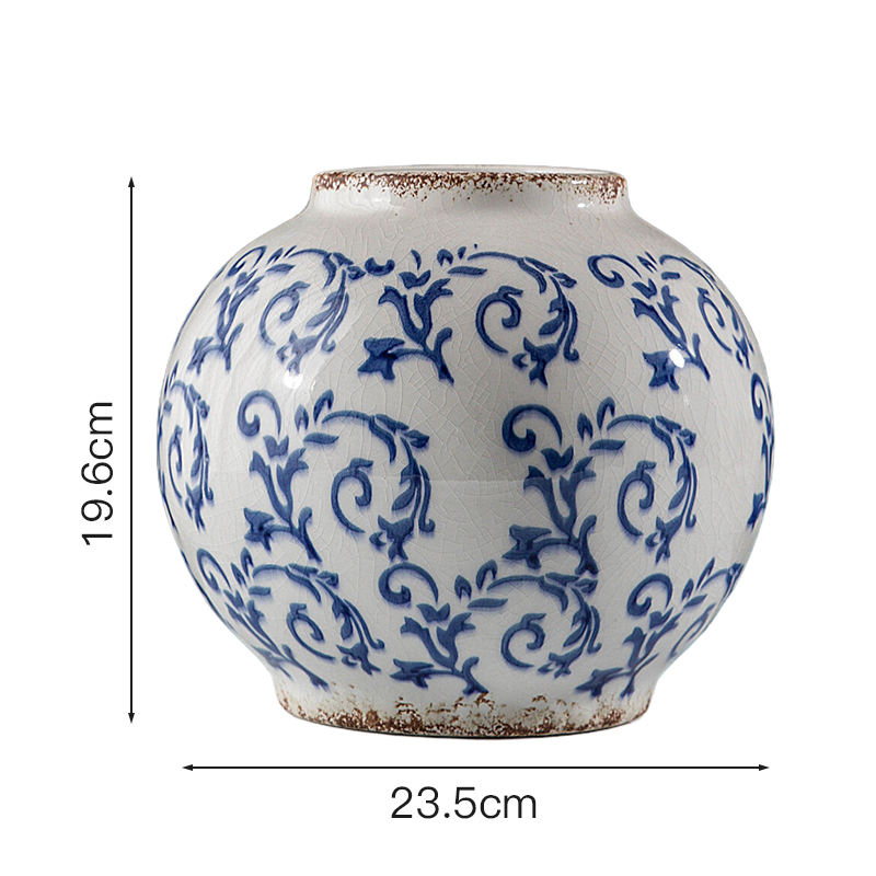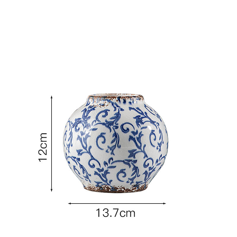 Vintage Distressed Blue Floral Ceramic Planter Flower Pot Rustic Charm for Indoor Garden Ceramic Pot