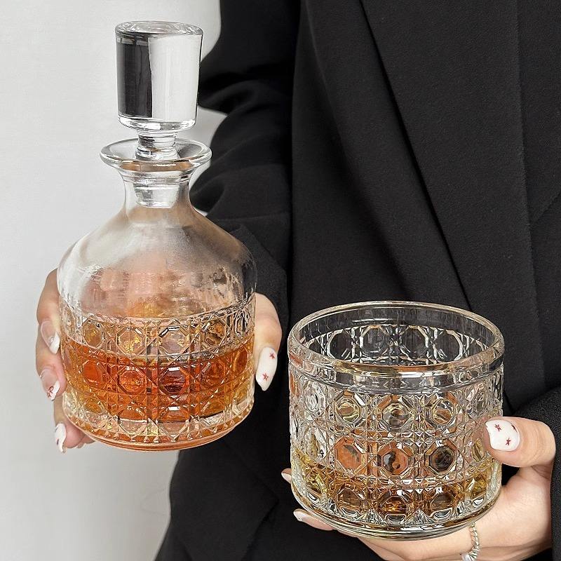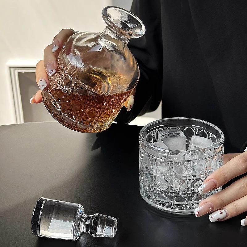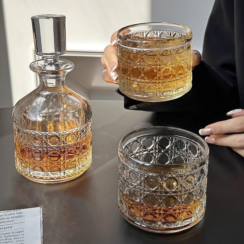 Set di Bicchieri Decanter per Vino in Cristallo Vintage con Rilievi, Impilabili, Set di Bicchieri Decanter per Whisky Impilabili, Capacità 280ml