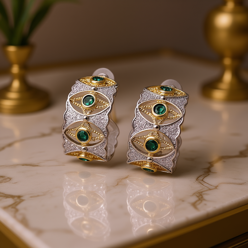 Vintage Eye Shape Huggie Earrings Gold Plated Zinc Alloy Zircon Bezel Setting Women's Party Fashion Jewelry