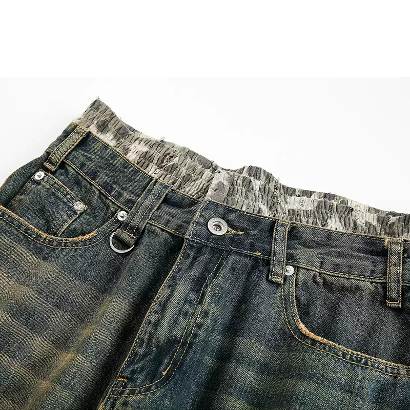 Shorts Vintage Jorts Patchwork Jorts jeans con nappine pantaloni larghi Bermuda Be Hombre pantaloncini in Denim da uomo