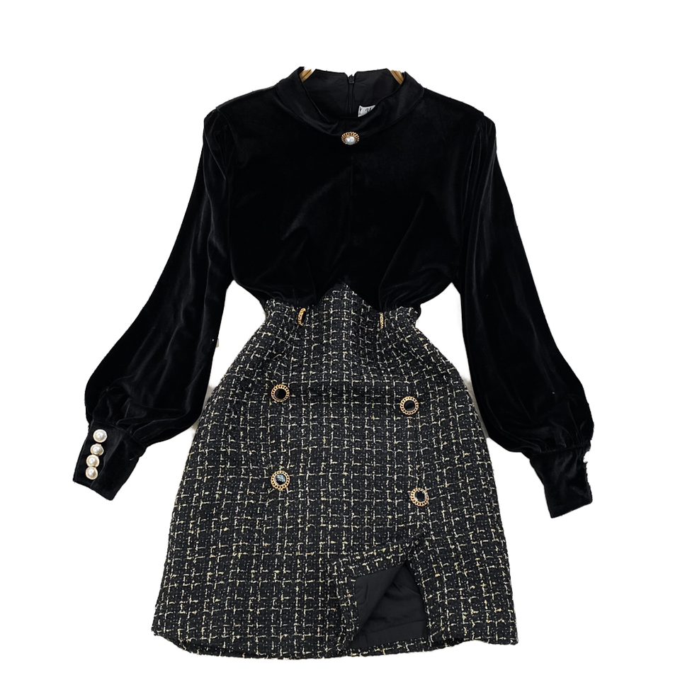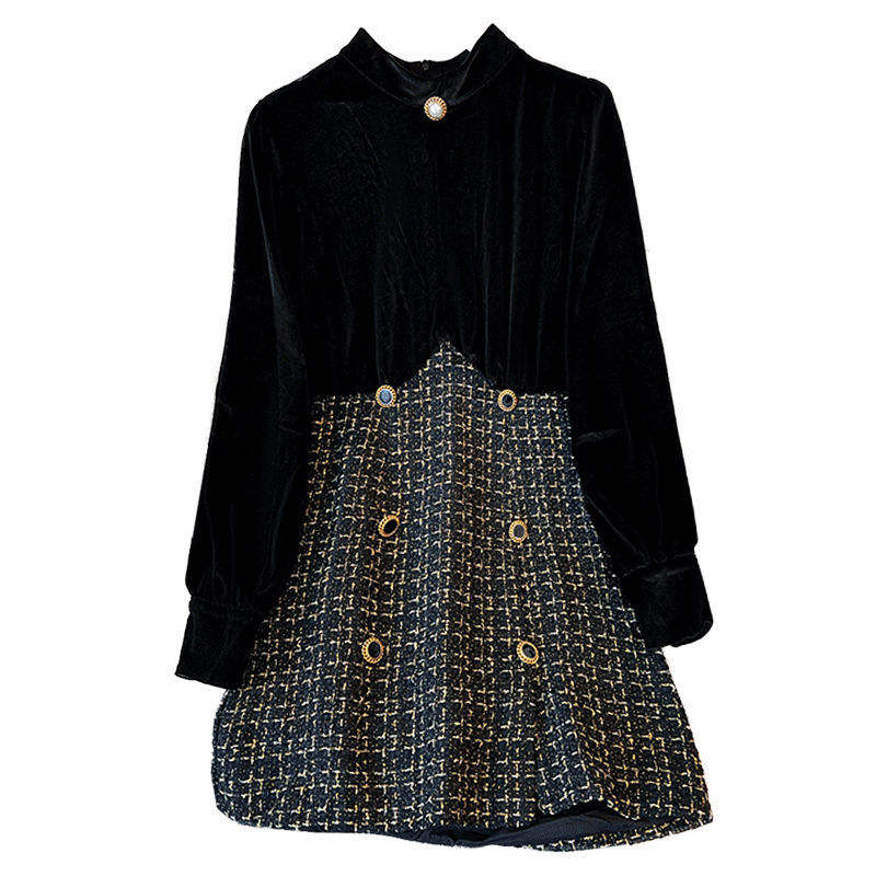 Vintage Fall Tunic Dress for Women Plus Size Knee-Length Slim Casual Style Empire Patchwork Lace Stand Front Breathable Winter