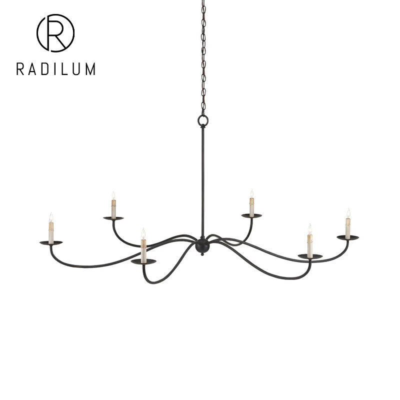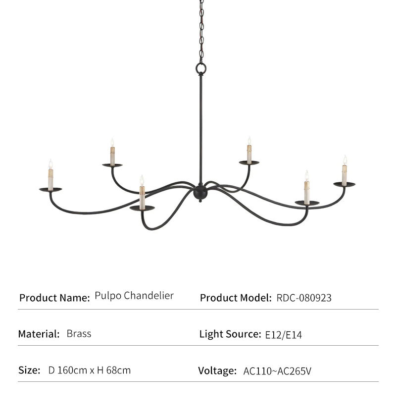 Vintage Farmhouse Chandelier Luxury Villa Dining Decor 6 Light Blackened Brass Curved Arm Candle Fixture Pulpo Chandelier