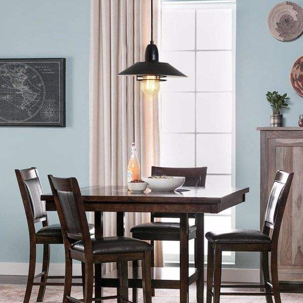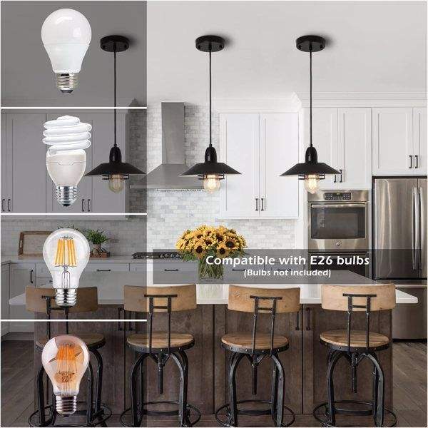 Vintage Farmhouse Pendant Light Black Metal Frame Adjustable Spring E26 Hanging Lamp for Kitchen Living Room Barn Entryway