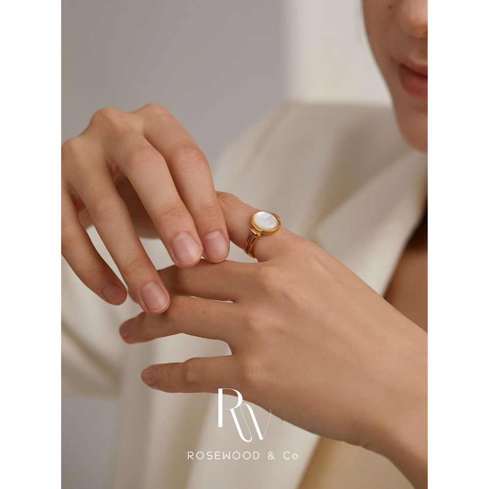 Anello Sigillo Vintage Placcato Oro, Non si Ossida, con Fascia in Madreperla e Motivo Animale, Impermeabile, con Catena Dorata, Impilabile