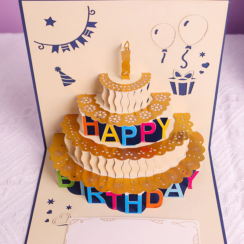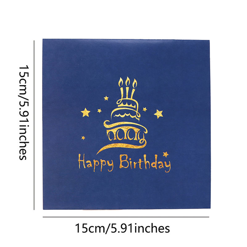 Vintage Hand Folded 3D Greeting Card Birthday Cake Candle Pop up Cards Handwritten Note Family Friends Birthday Celebration Gift