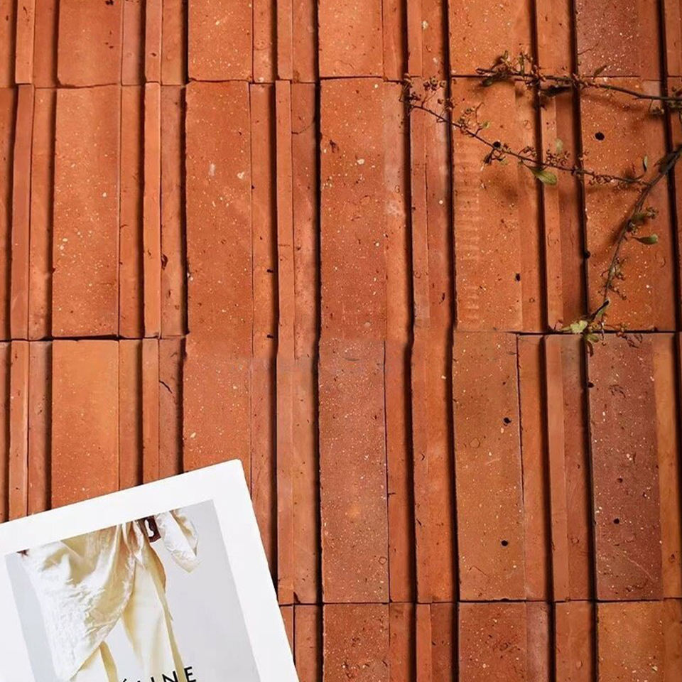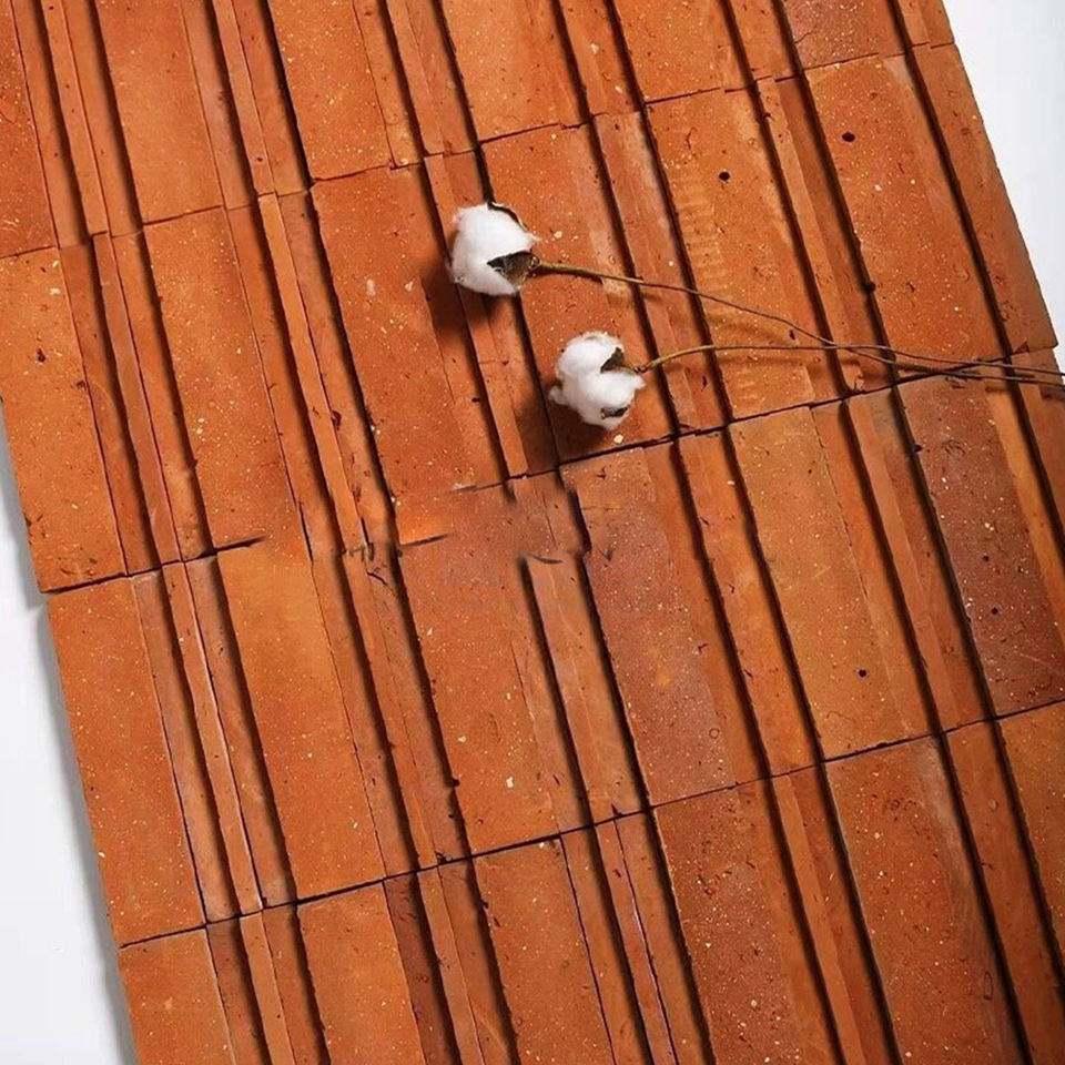 Mattonella in Terracotta Allungata Fatta a Mano Vintage con Motivo Decorativo in Rilievo, Piastrella da Parete Serie Designer per Spazi Commerciali
