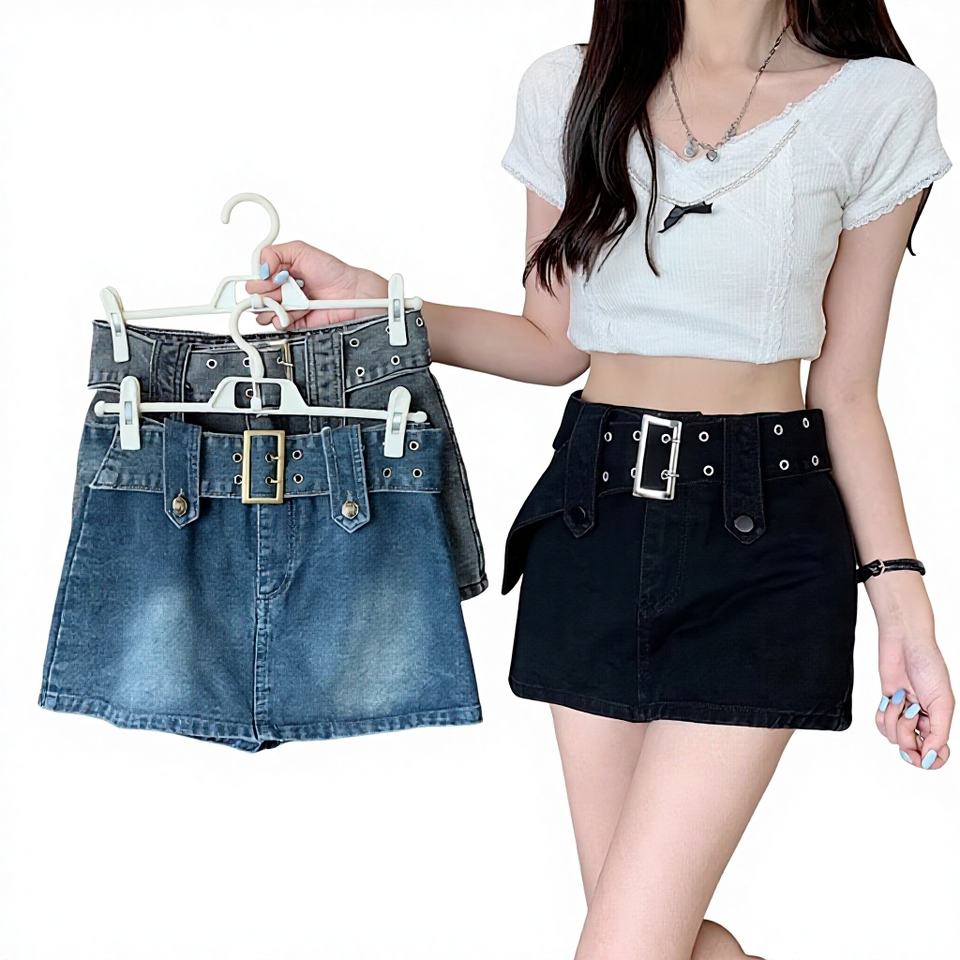 Vintage High Waist Denim Short Skirt Women's Summer 2022 New A-line Quick Dry Zipper Hot Girl Hip Trousers