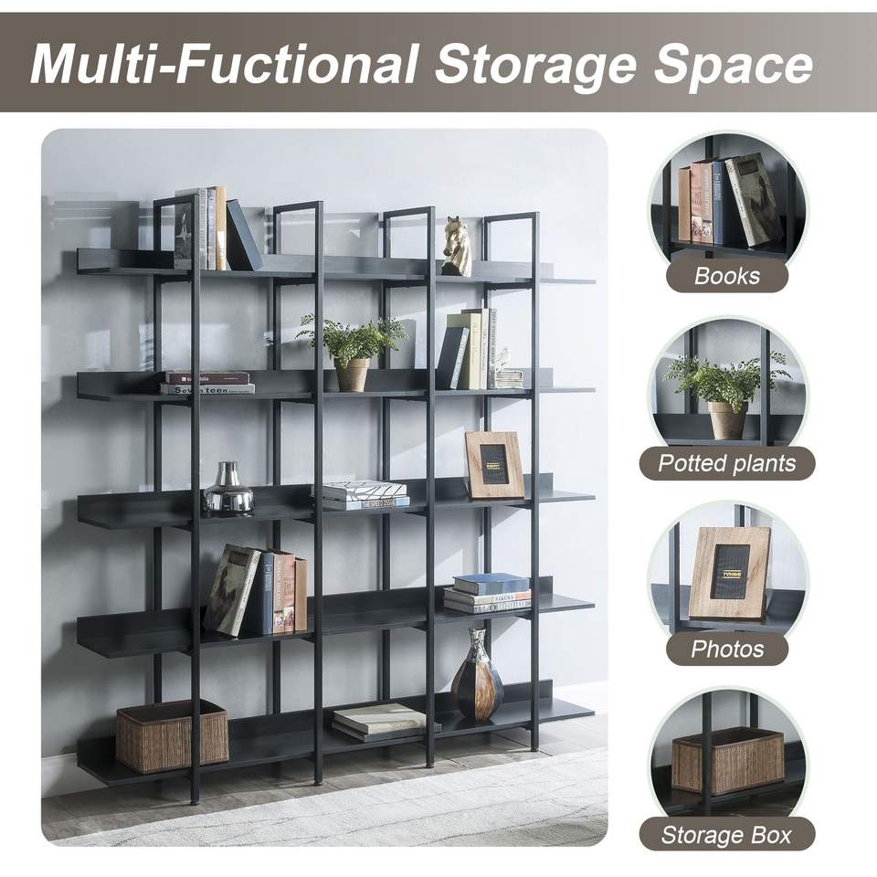 Libreria a 5 Ripiani in Stile Industriale Vintage, Scaffale Aperto per Casa e Ufficio con Struttura in Metallo e Pannelli in MDF