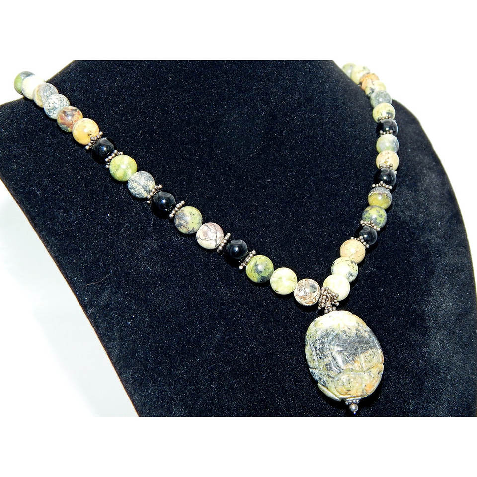 Vintage Jasper, onice nero e Serpentine in pietra con asiatico ciondolo intagliato