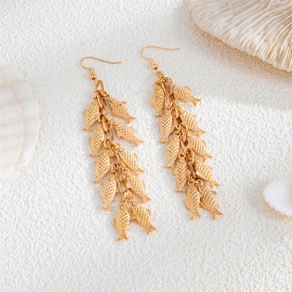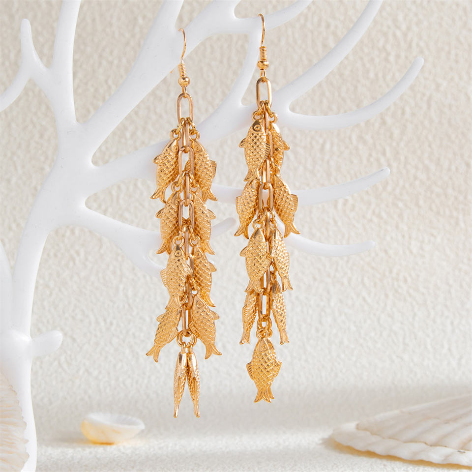 Orecchini pendenti Vintage a catena lunga in metallo a forma di pesce per donna alla moda da donna orecchini con nappine e nappe accessori per gioielli di moda