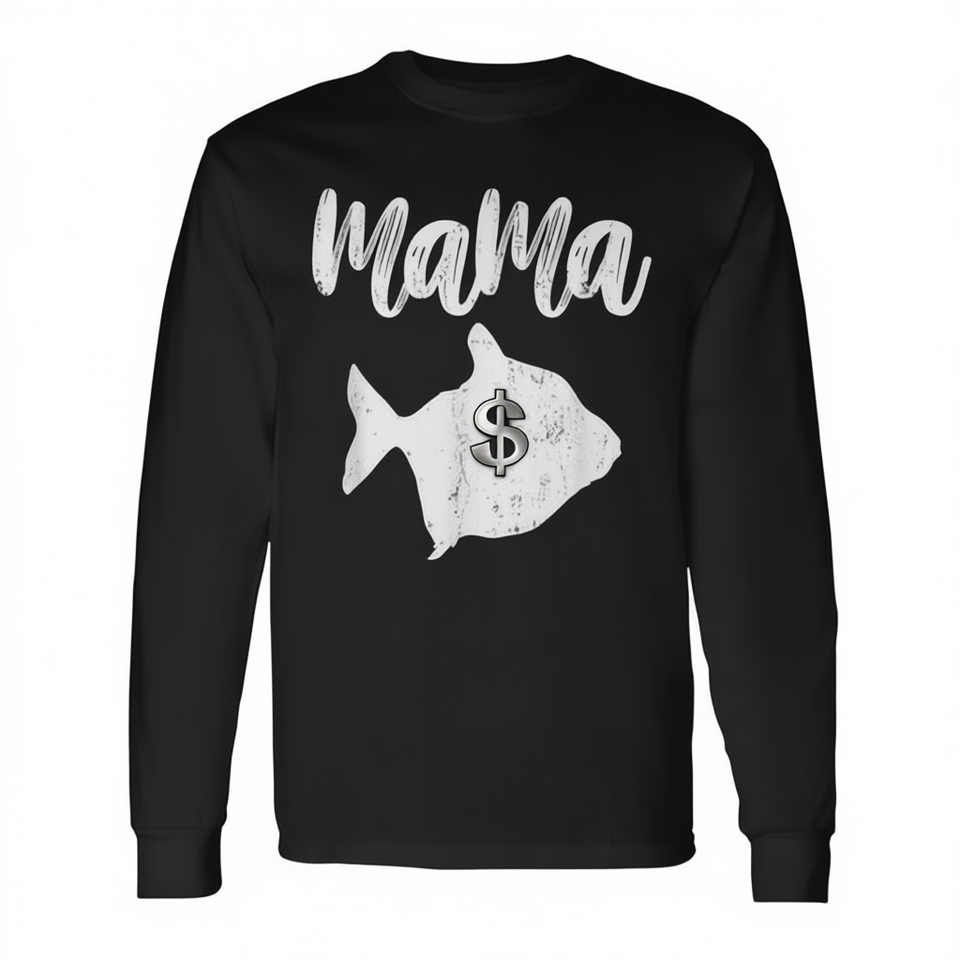T-shirt vintage a maniche lunghe con stampa Mama Silver Dollar Fish per la mamma - Un'elegante idea regalo promozionale