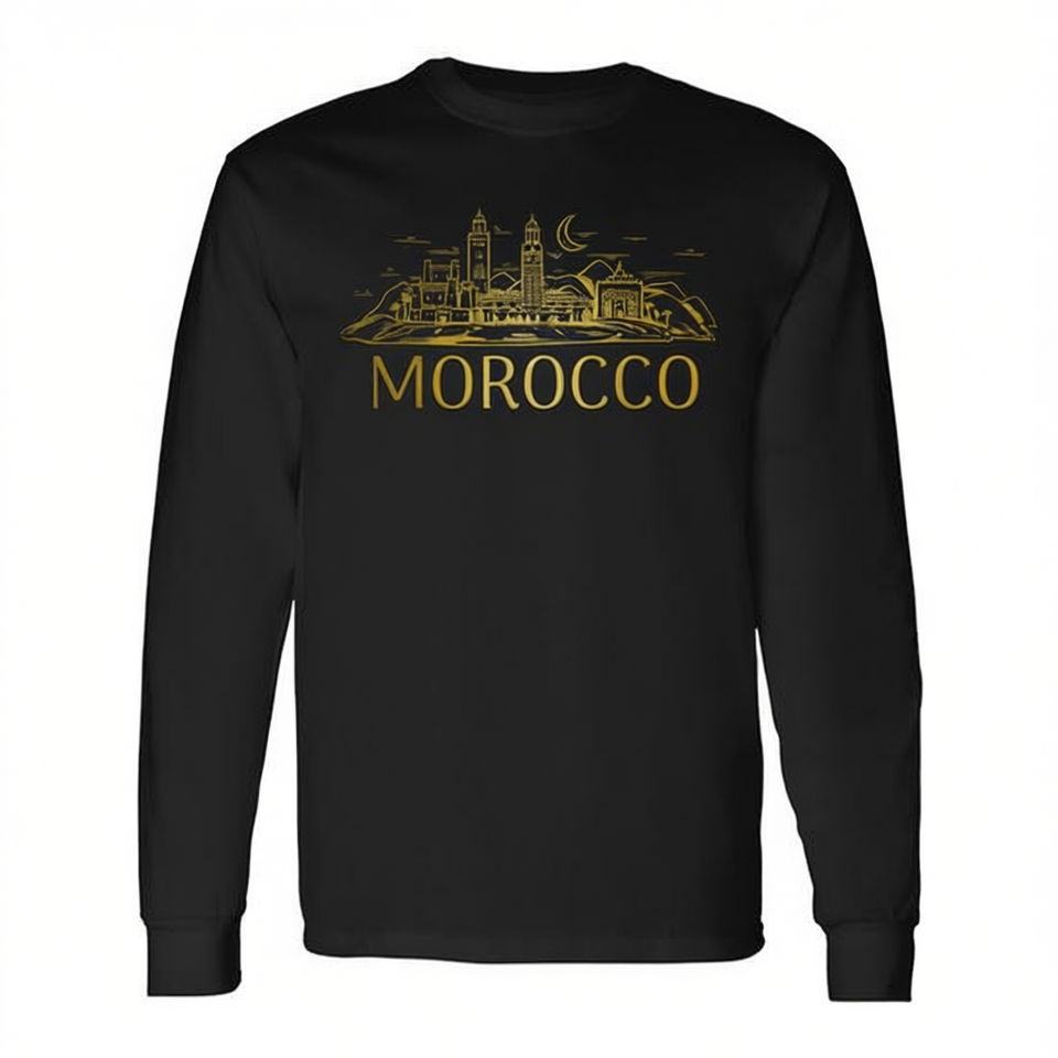 T-shirt promozionale vintage a maniche lunghe con stampa Marrakech Moroccan Pride