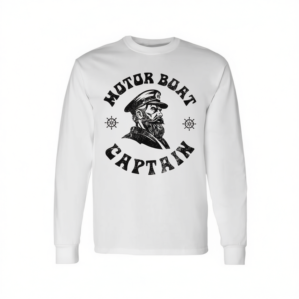 T-Shirt Vintage a Maniche Lunghe per Capitano di Imbarcazioni a Motore, T-Shirt Promozionale per Capitano di Imbarcazioni a Motore