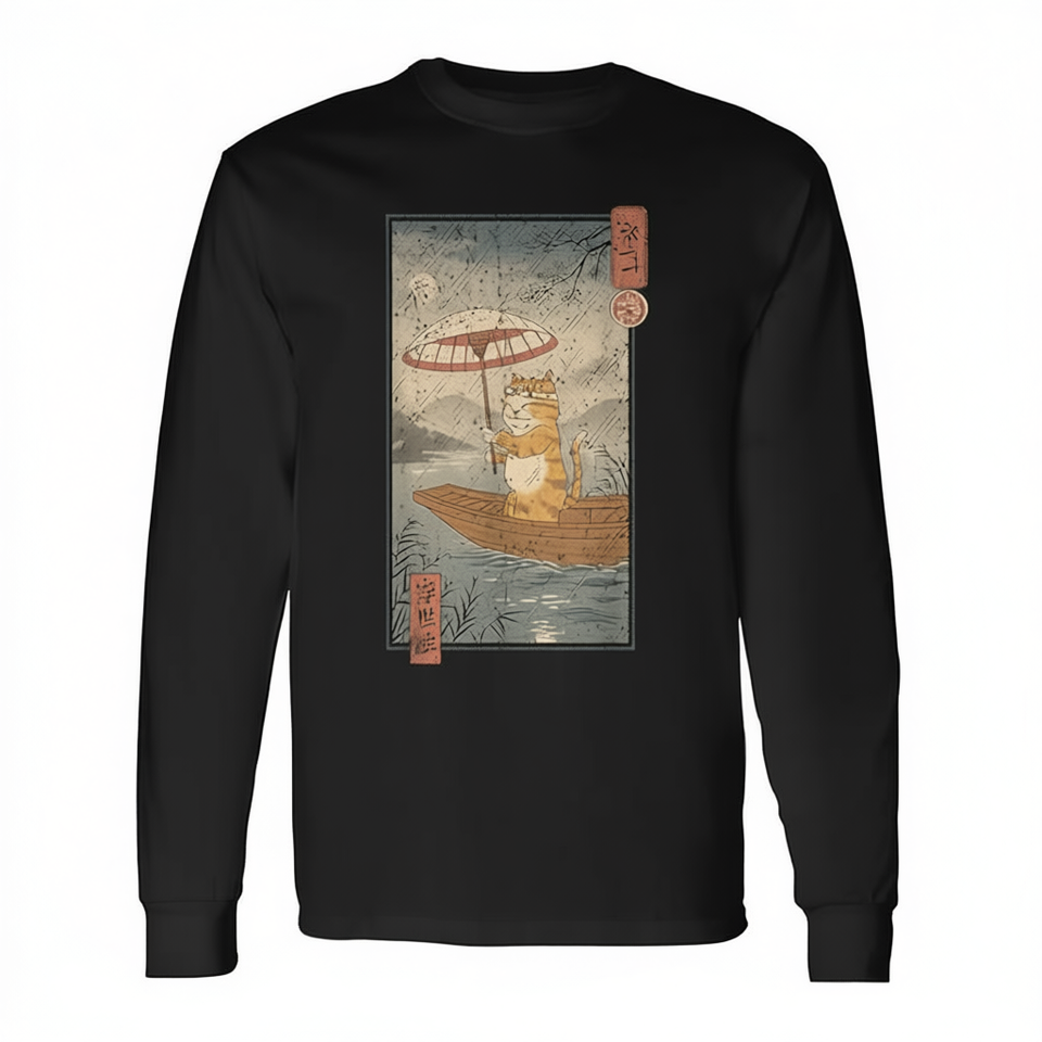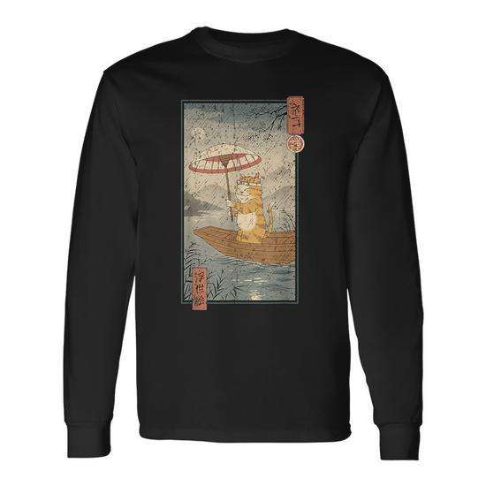 T-shirt vintage a maniche lunghe Neko Boat Edo con design con stampa artistica